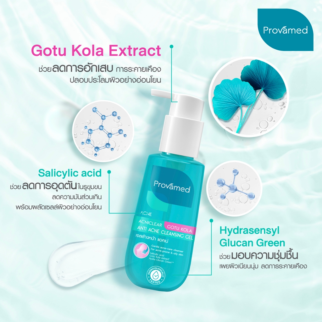 Provamed เจลล้างหน้าลดสิว รอยสิว Acniclear Anti Acne Cleansing Gel ปลอบประโลมผิว โปรวาเมด 150 มล.