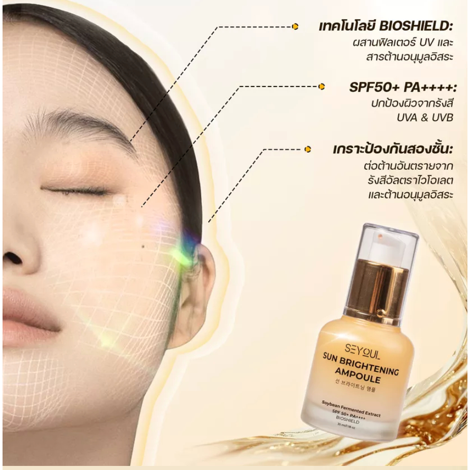 Sun Ampoule ครีมกันแดดหน้า SPF50+ PA+++ กันยูวี & แสงสีฟ้า บางเบา คุมมัน ไม่อุดตัน ผิวกระจ่ างใส 35ml