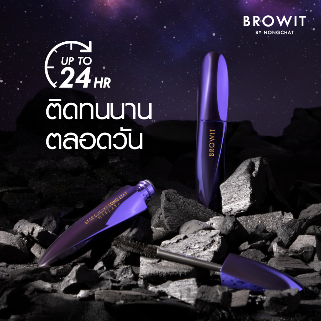 【น้องฉัตร】มาสคาร่า สีม่วง【สตาร์กาแล็กซี่ลองสเตย์】 กันน้ำ BROWIT STAR GALAXY LONG STAY MASCARA 8G