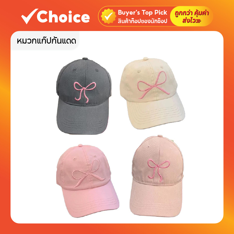 หมวกแก๊ปกันแดด Cotton ปักโบว์น่ารัก ทรงสวย เข้ากับทุกรูปหน้า