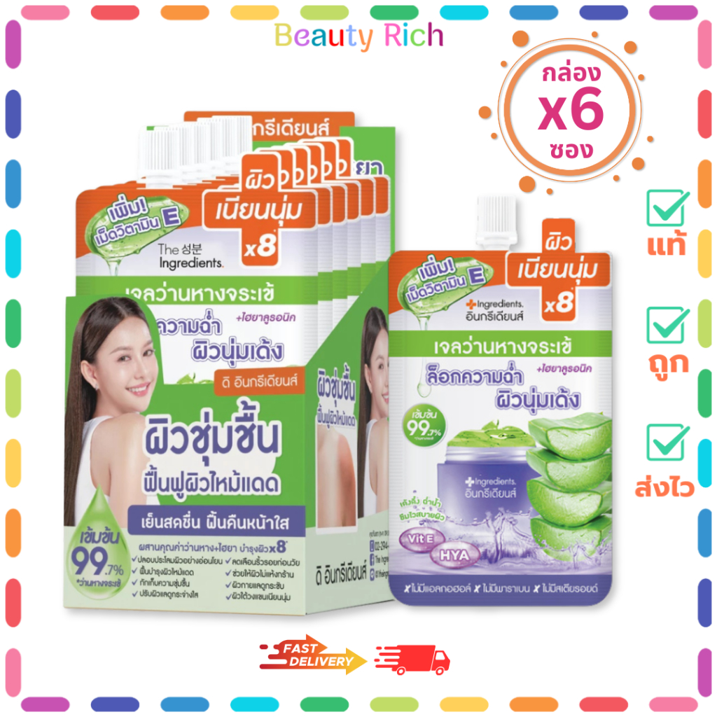 (กล่อง 6 ซอง) The Ingredients ดิ อินกรีเดียนส์ เจลว่านหางจระเข้เข้มข้น (ปริมาณ 40 กรัม)