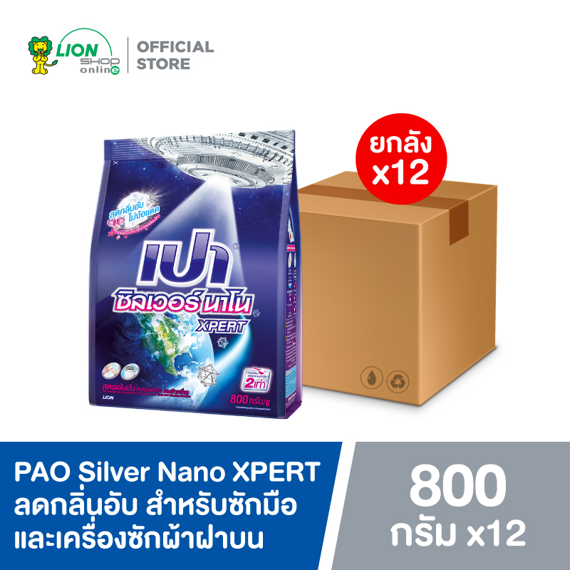 [ยกลัง] PAO Silver Nano XPERT ผงซักฟอก เปา ซิลเวอร์ นาโน 800 กรัม 12 ถุง