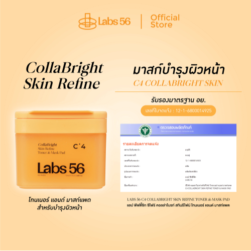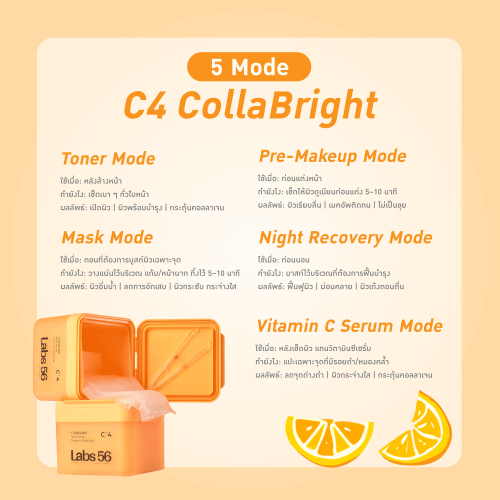 Labs56 C4 (1 กระปุก 60 แผ่น)-CollaBright Toner & Mask Pad|โทนเนอร์แพดแล็ป56 สูตรผิวกระจ่างใส
