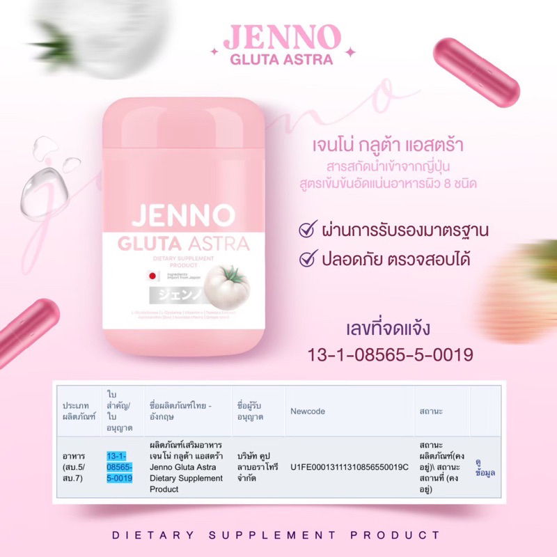 (พร้อมส่ง+1แถม2) เจนนิไฮยา Jenni Hya 💖 เจนโน่กลูต้า ลดสิว ผิวใส ชะลอความแก่ Jenno Gluta Astra x Jenni Hya