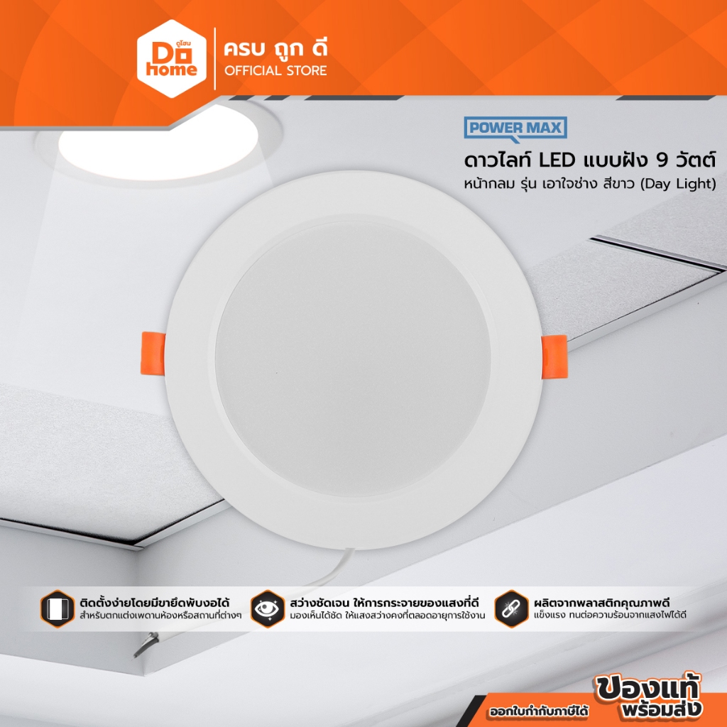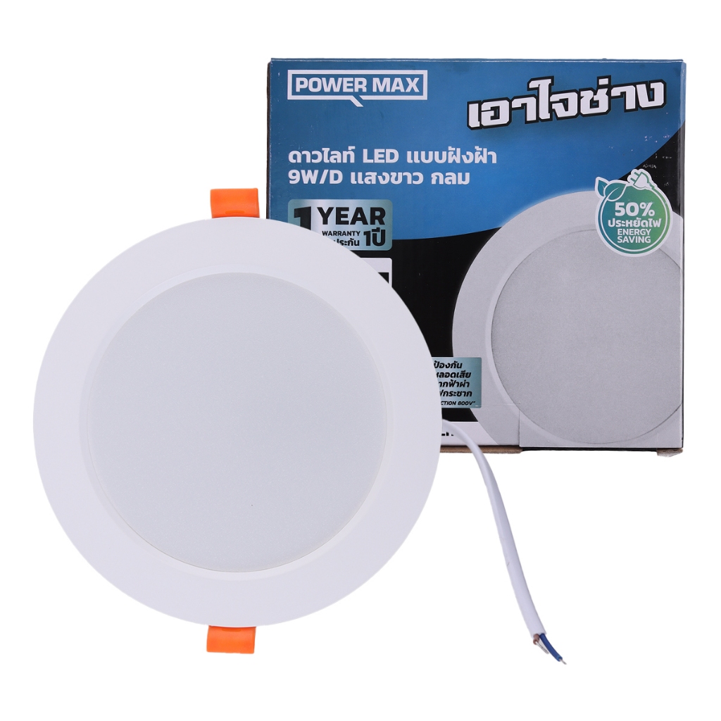 POWER MAX ดาวไลท์ LED แบบฝัง 9 วัตต์ หน้ากลม รุ่น เอาใจช่าง สีขาว (Day Light) |ZWF|