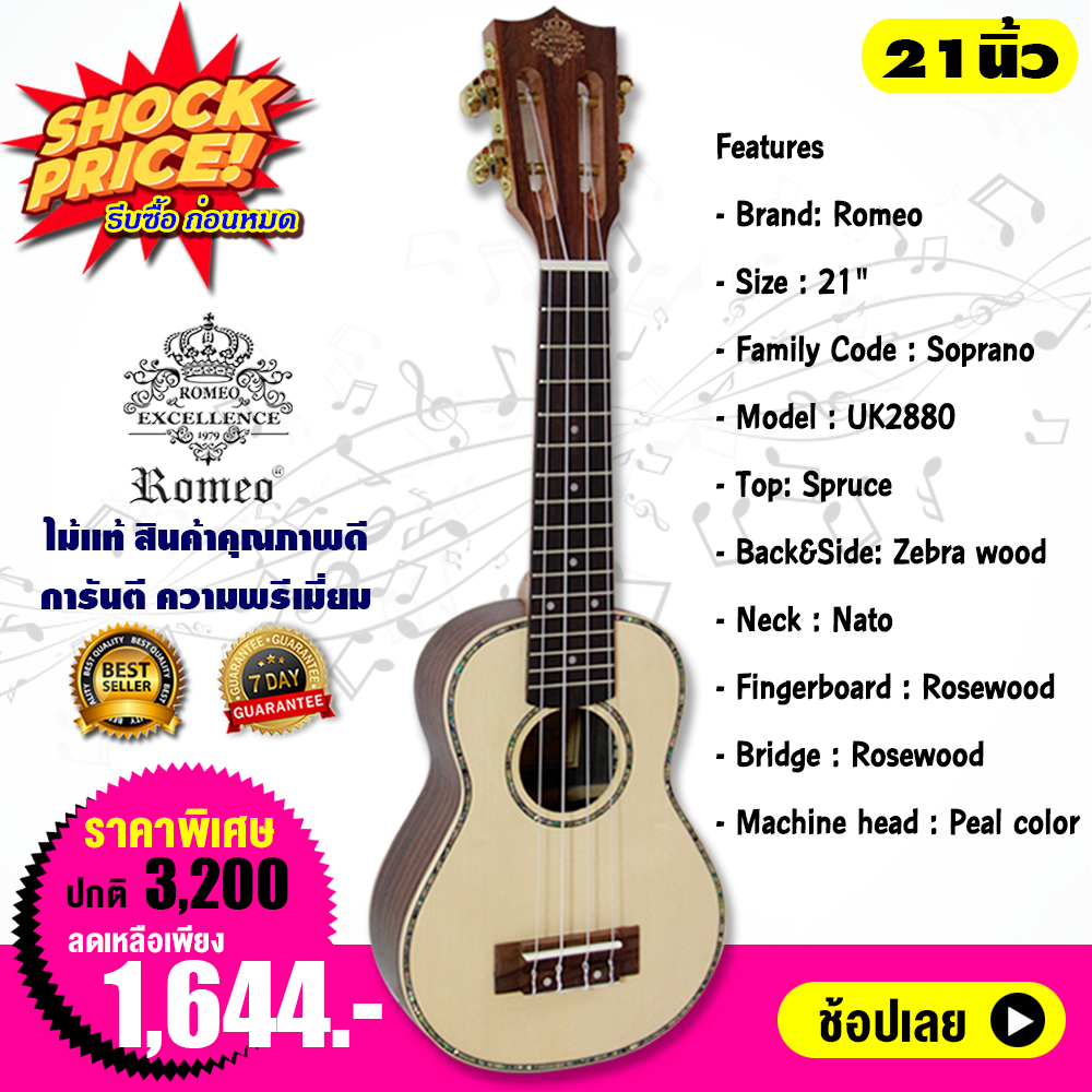 Shock Price💥 Ukulele อูคูเลเล่ ยูคู่ 21 นิ้ว ไม้คุณภาพสูงสำหรับมืออาชีพ Romeo รุ่น limited อย่าพลาดก่อนหมด