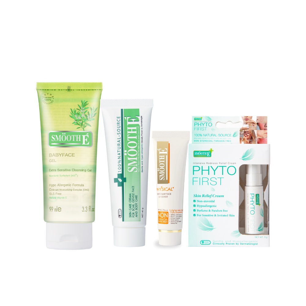 Smooth E Great Skin Everywhere Set ผิวดีในทุกที่ ทำความสะอาดผิวอ่อนโยน ปกป้องผิวจากแดด ลดรอยแดง ผิวแพ้ง่าย
