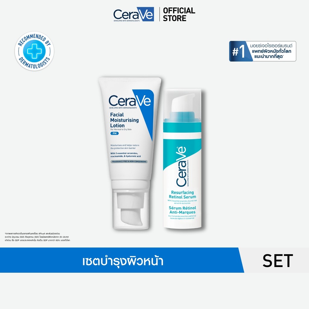 [เซตสุดคุ้ม] เซราวี CERAVE PM Lotion โลชั่นบำรุงผิวหน้าสำหรับผิวธรรมดา และ Retinol Serum เรตินอลเซรั่ม