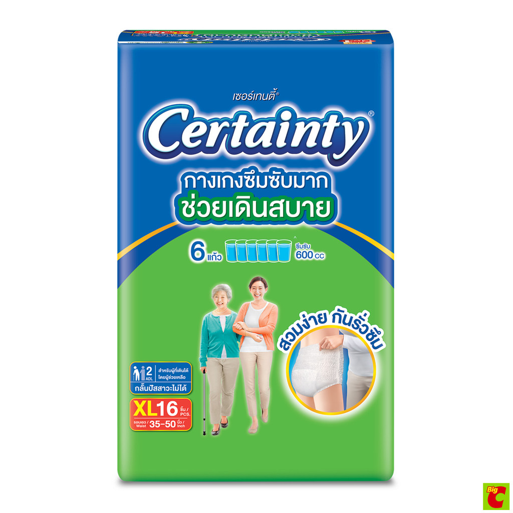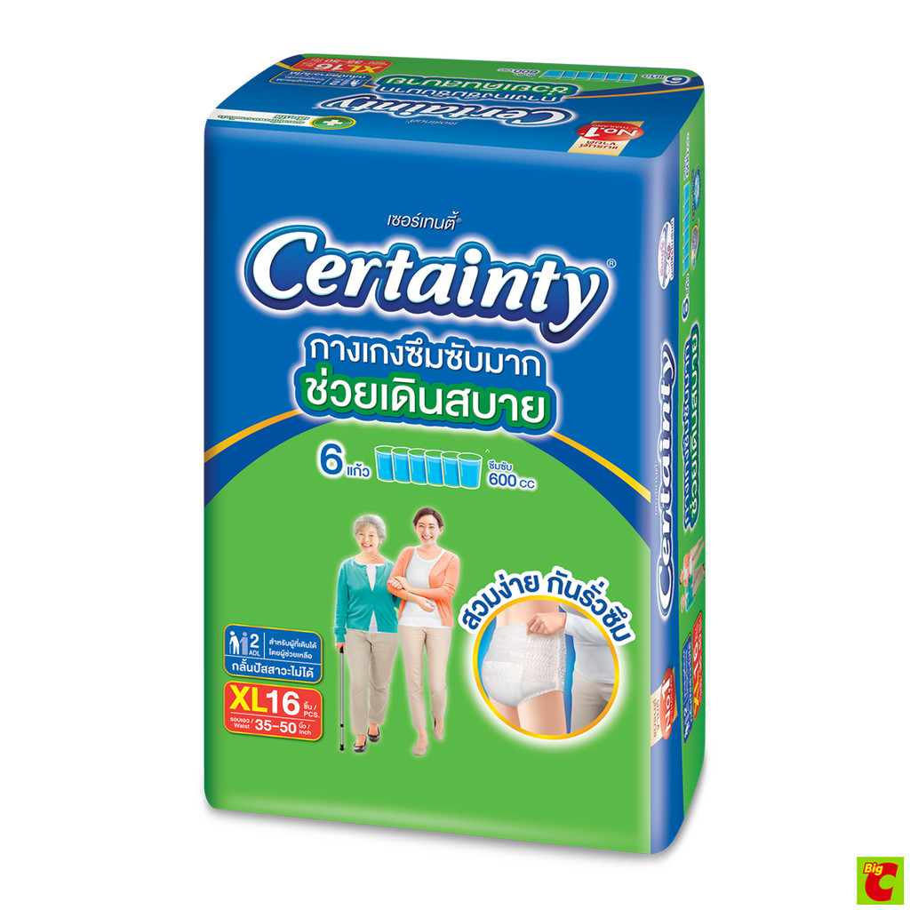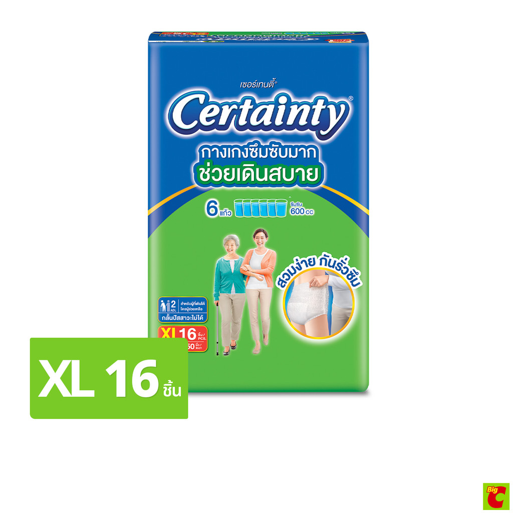 เซอร์เทนตี้ ซุปเปอร์แพ้นส์ กางเกงผ้าอ้อมผู้ใหญ่ ซึมซับมาก XL 16 ชิ้น