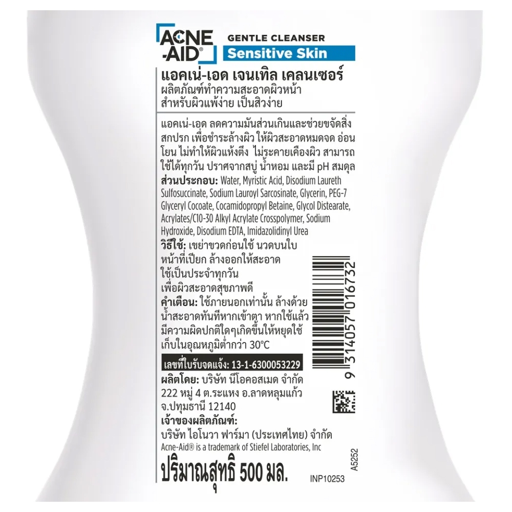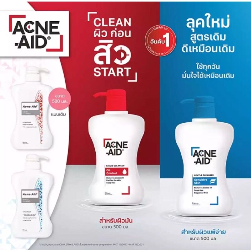 Acne-Aid แอคเน่-เอด คลีนเซอร์ 2 สูตร (1 ขวด 500 / 900 ml) EXP : 2027