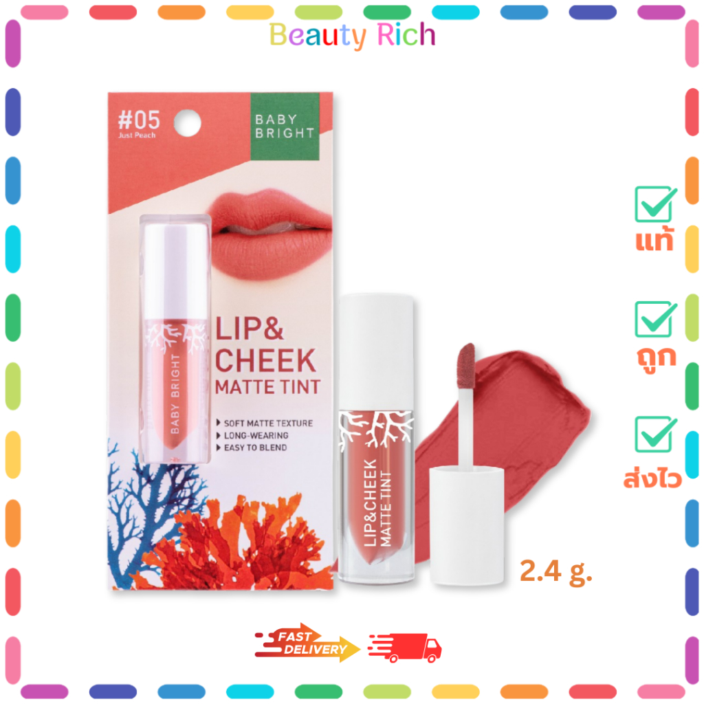 (1 แท่ง) Baby Bright ลิปแอนด์ชีคแมทท์ทินท์ #05 Just Peach (2.4 g.)