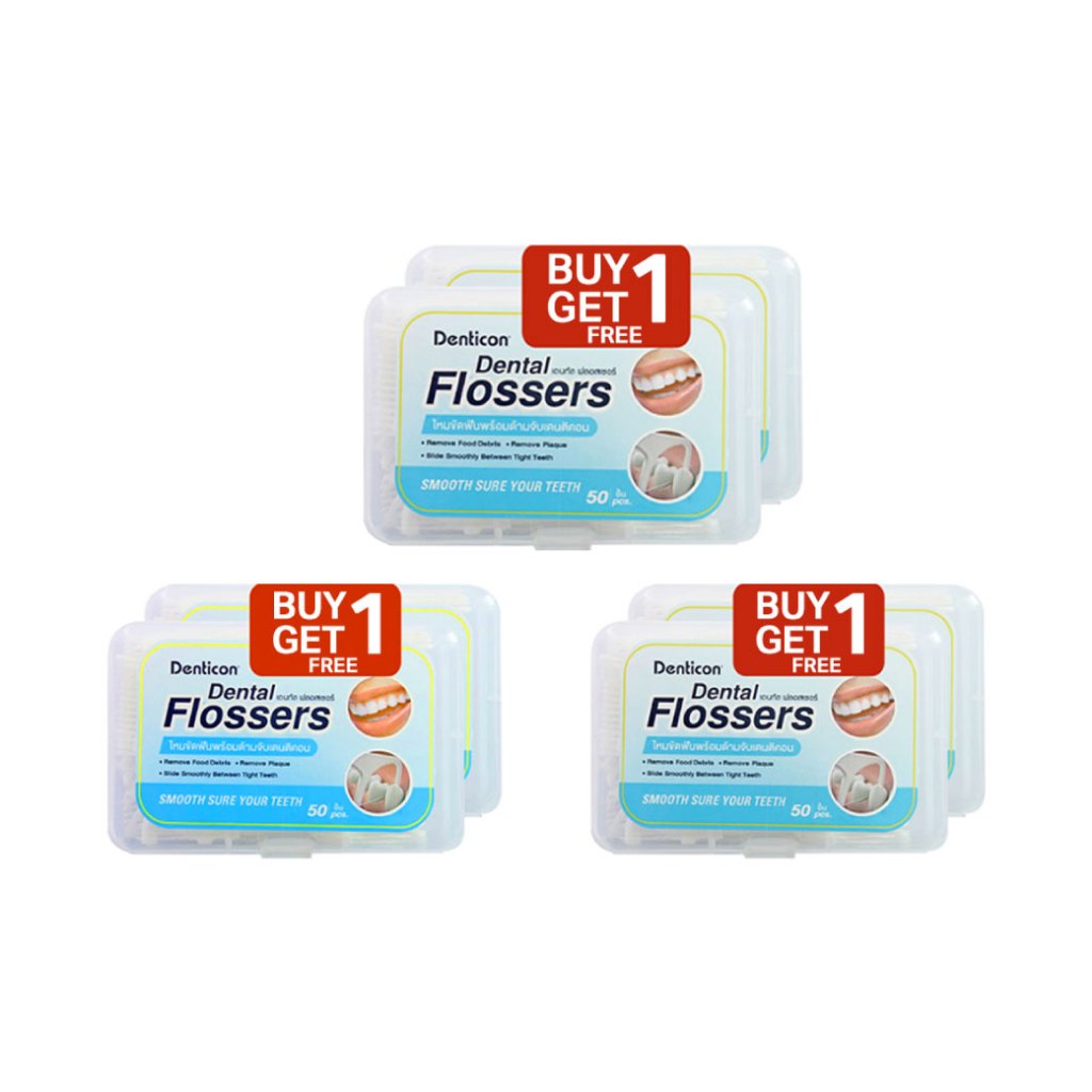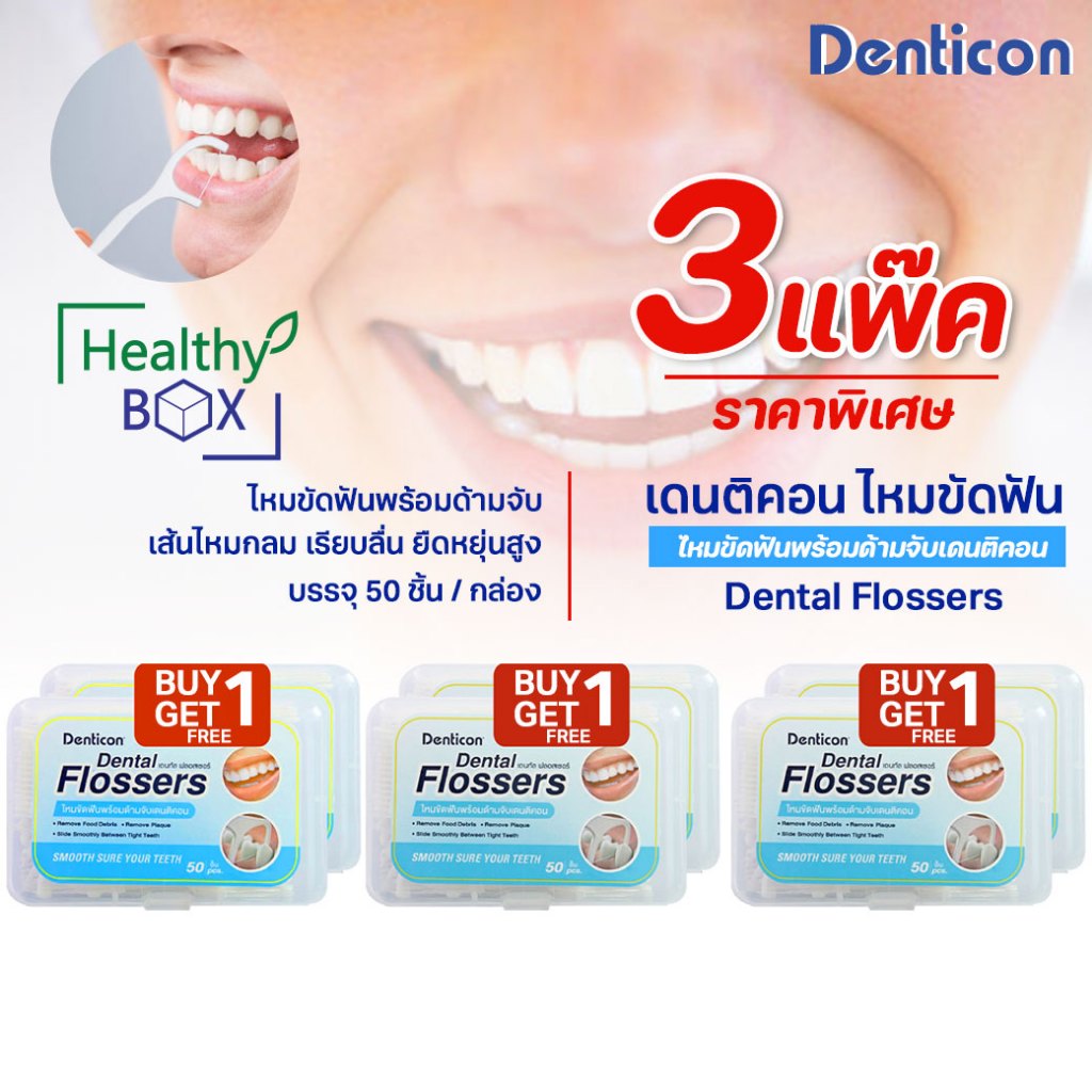 แพ็ค 3 Panc Denticon Dental Flossers ไหมขัดฟันพร้อมด้าม 150ชิ้น เดนติคอน ไหมขัดฟัน พร้อมด้ามจับ เส้นไหมลื่นชนิดกลม (v)