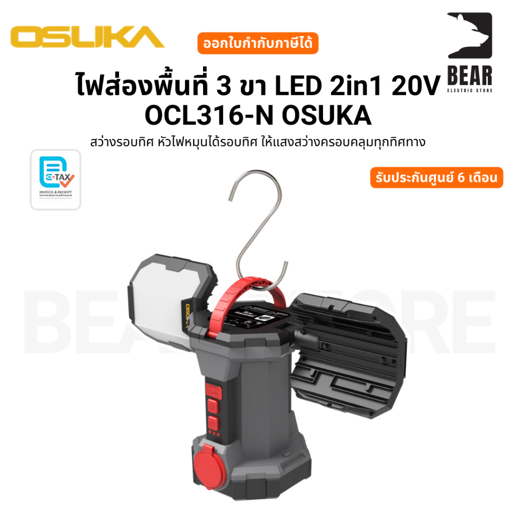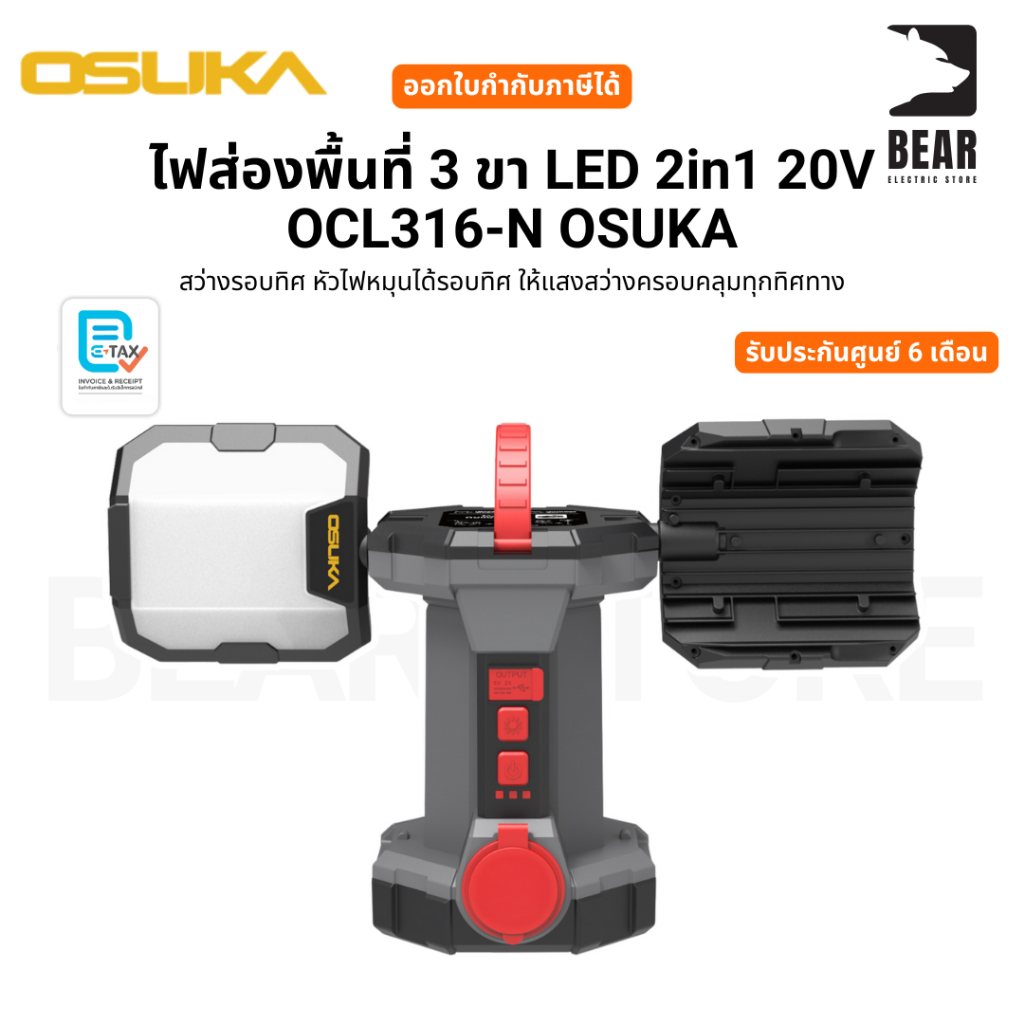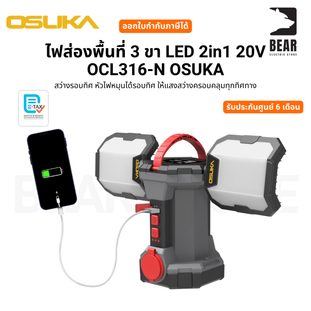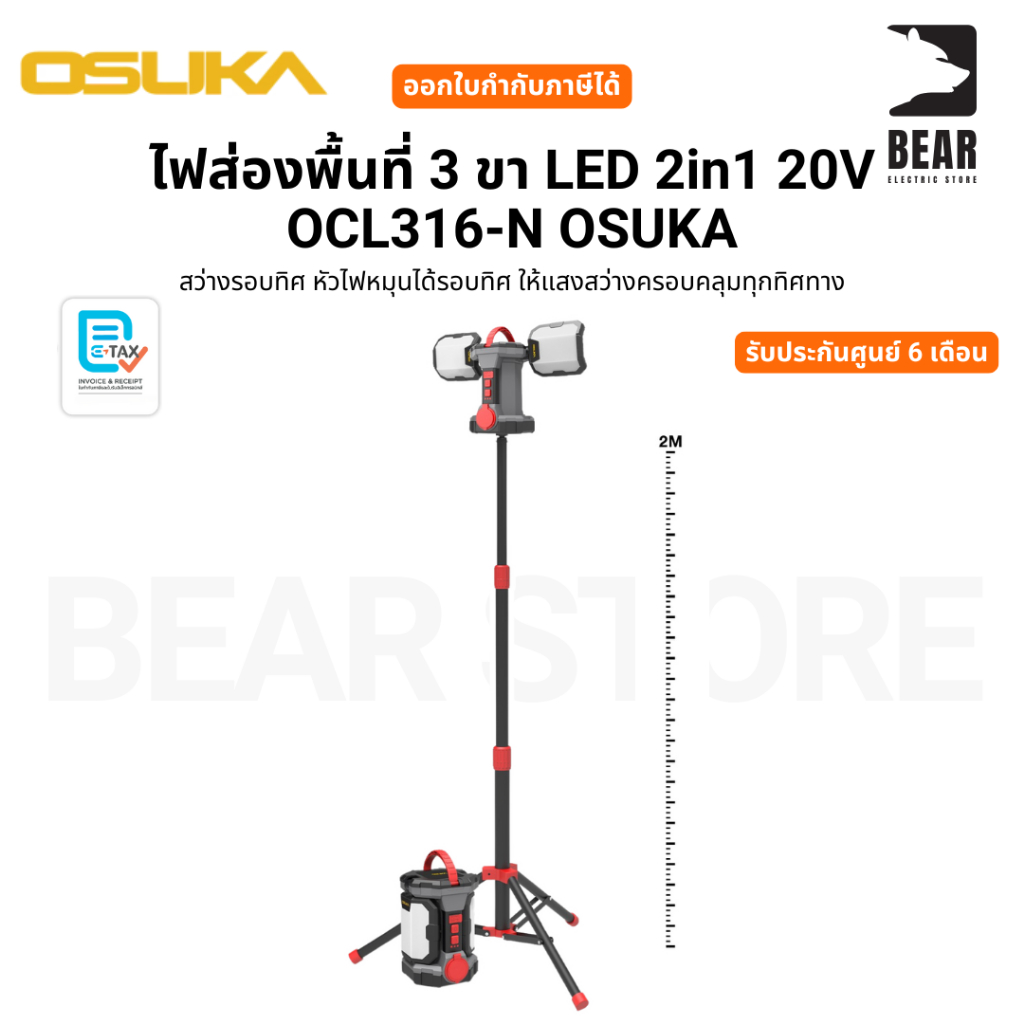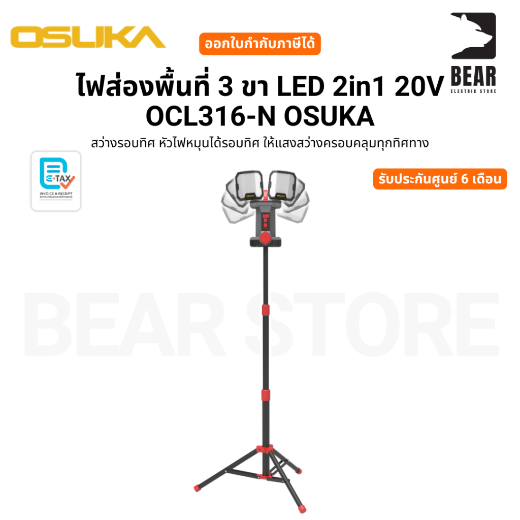 OSUKA ไฟส่องพื้นที่ 3 ขา LED 2in1 20V OCL316-N ไฟพร้อมขา หมุนได้รอบทิศ รับประกันศูนย์ 1 ปี