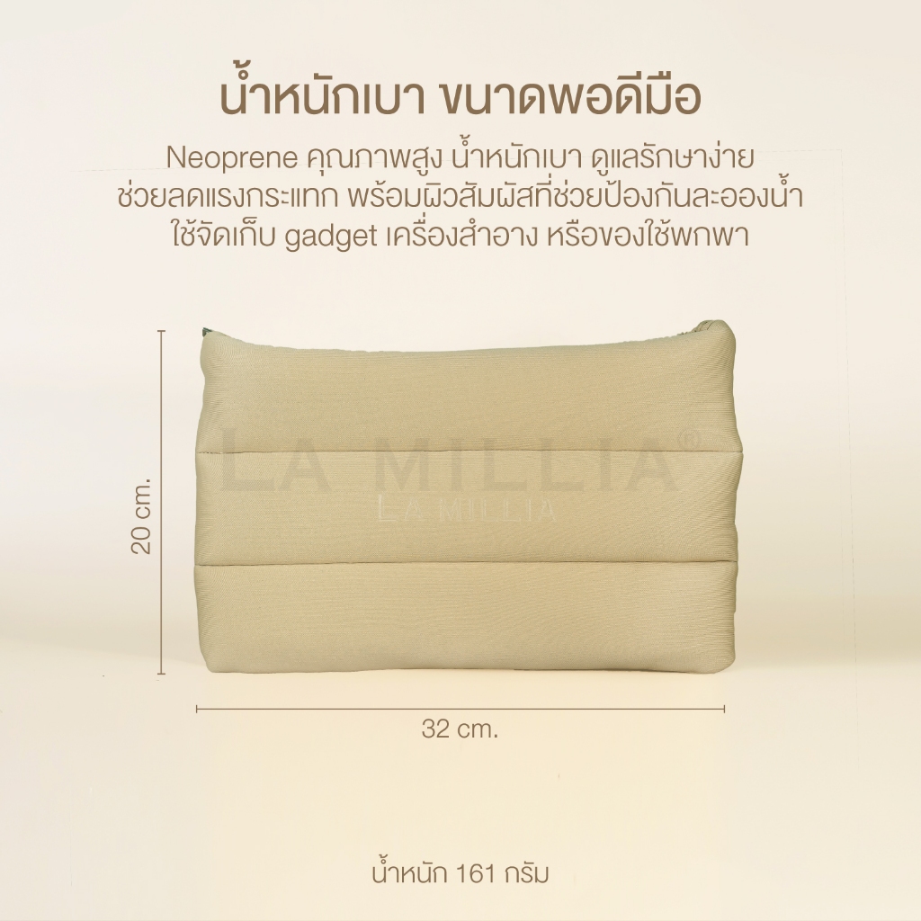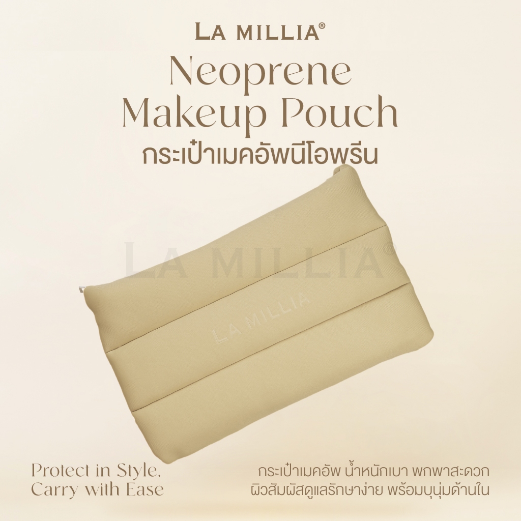 LA MILLIA Neoprene Makeup Pouch ลา มิลเลีย กระเป๋า เมคอัพ นีโอพรีน เก็บของ เครื่องสำอาง ทนทาน ดีไซน์ เรียบหรู