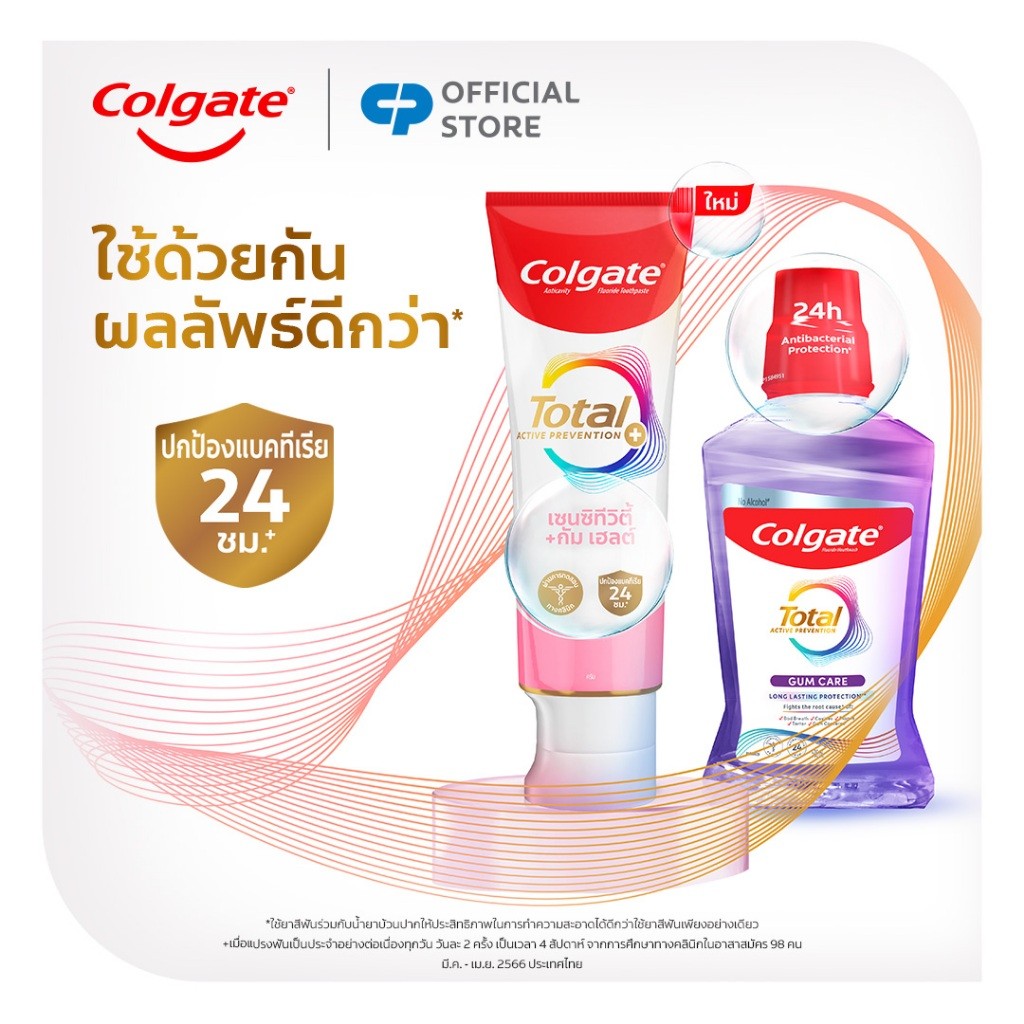 [มี 3 แพ็คให้เลือก] ยาสีฟัน คอลเกต โททอล เซนซิทีวิตี้ + กัม เฮลต์ 150 กรัม Colgate Total Sensitivity + Gum Health 150g