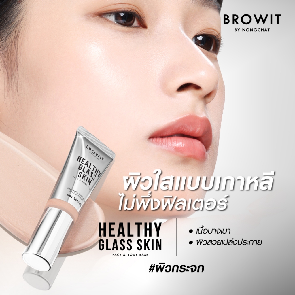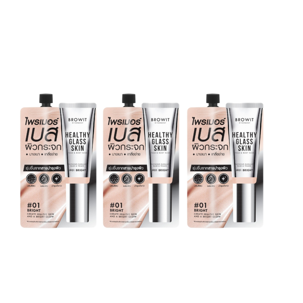ซอง【น้องฉัตร】01 เฮลธ์ตี้กลาสสกิน【เบสเตรียมผิวก่อนแต่งหน้า】Browit Healthy Glass Skin Face & Body Base