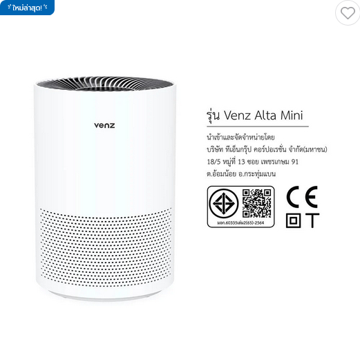 เครื่องฟอกอากาศ VENZ ALTA 20 20ตารางเมตร พร้อมส่ง!!