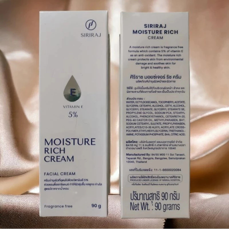ศิริราช มอยซเจอร์ ริช ครีม (ใหม่) Siriraj Moisture Rich Cream Vitamin E 5% | ขนาด 90 กรัม