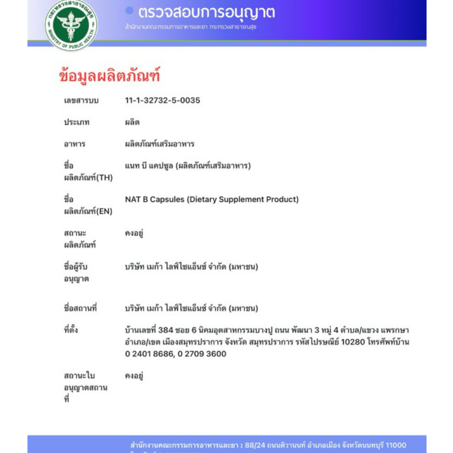 Mega NAT B capsules mega wecare แนทบี แคปซูล เมก้า วิตามินบีรวม B complex