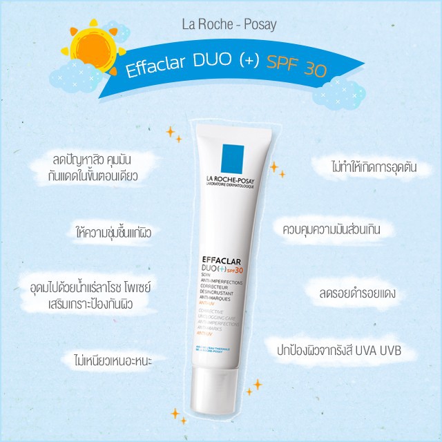 LA ROCHE-POSAY EFFACLAR DUO (+) SPF 30 40ml. - ครีมลดสิวผสมสารป้องกันแสงแดด สำหรับผู้เป็นสิวง่าย