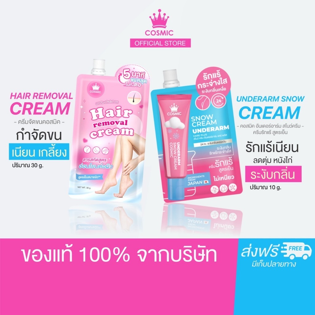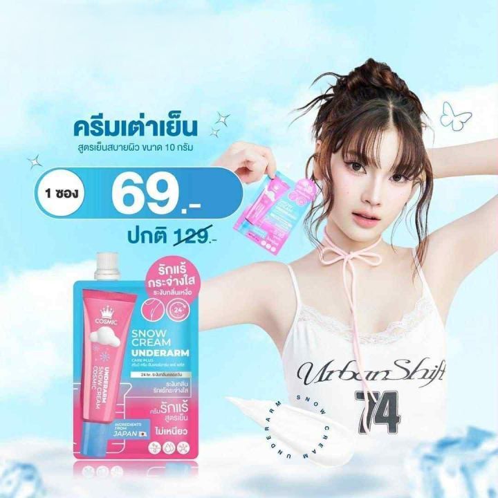 (1ซอง)COSMIC คอสมิค SNOW CREAM UNDERARM CARE PLUS ครีมเต่าเย็น ครีมทารักแร้ สูตรเย็น ลดกลิ่นลดเหงื่อ (ของแท้จากบริษัท)