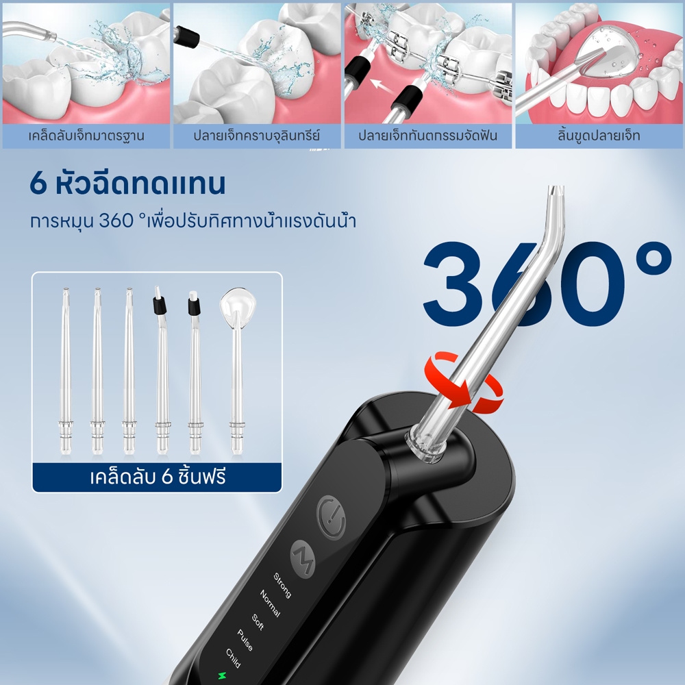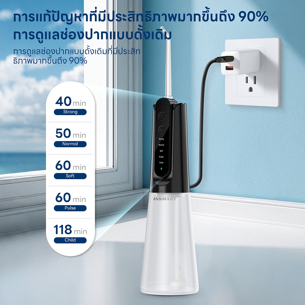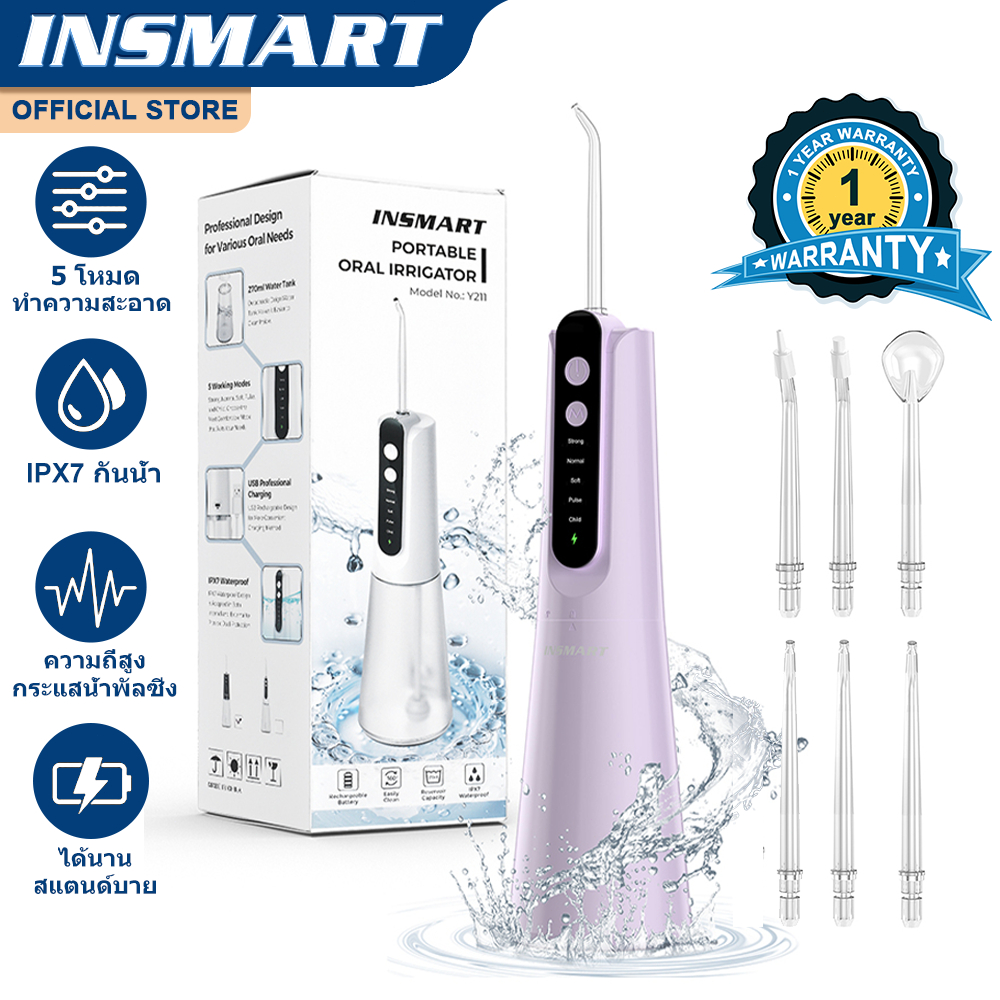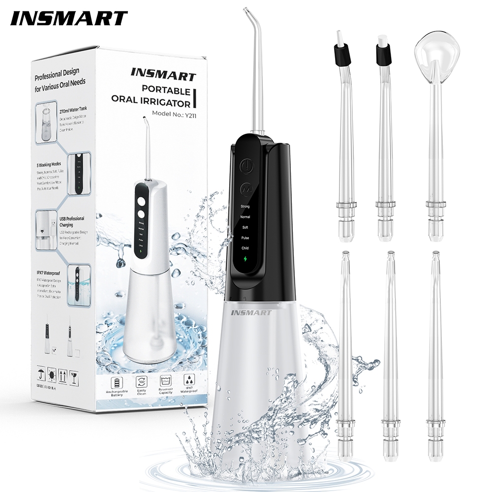 INSMART Water Flosser DIY ไหมขัดฟันพลังน้ํา 6 หัวฉีด 5 โหมด Irrigator IPX7 กันน้ํา