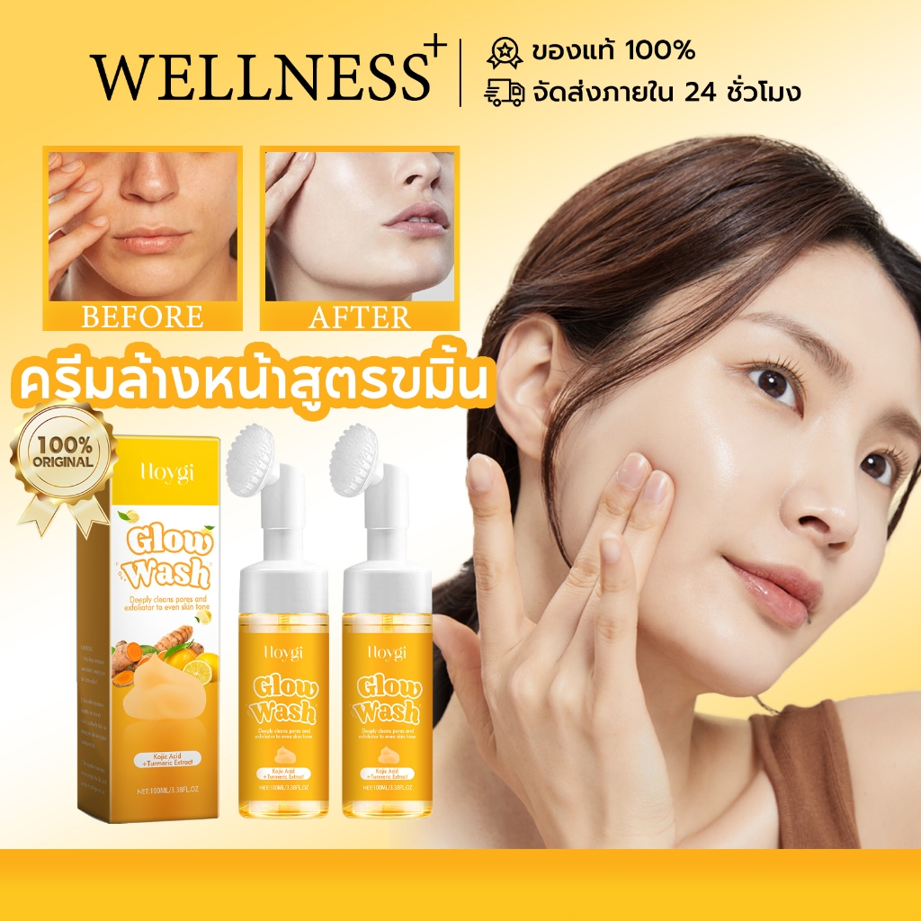 Hoygi ครีมล้างหน้าสูตรขมิ้น Glow Wash ครีมล้างหน้า ช่วยทำความสะอาดรูขุมขน อ่อนโยน ให้ความชุ่มชื้น ผิวเรียบเนียน Cleanser