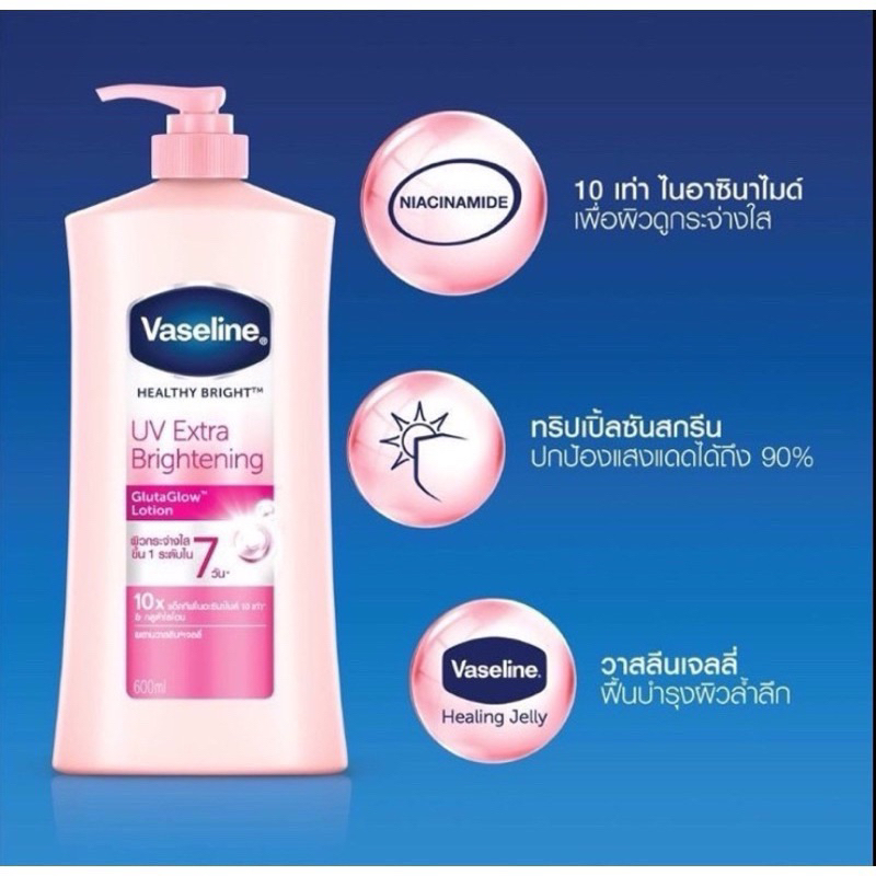 วาสลีน เฮลธี้ ไบรท์ ยูวี เอ็กซ์ตร้า ไบร์ทเทนนิ่ง กูลต้า โกลว์ โลชั่น 300มล. แพ็คคู่ 2 ขวด