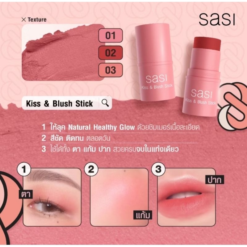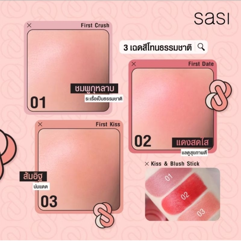 ส่งฟรี/ มีไลฟ์ (1ชิ้น)SASI Kiss & Blush Stick 4g ศศิ บลัชออนแท่งแบบครีม