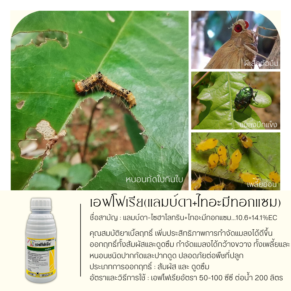 เอฟโฟเรีย 100ซีซี (ไธอะมีทอกแซม+แลมป์ดาไซฮาโลทริน) กำจัดได้ทั้งเพลี้ยและหนอน ทั้งชนิดปากกัดและปากดูด