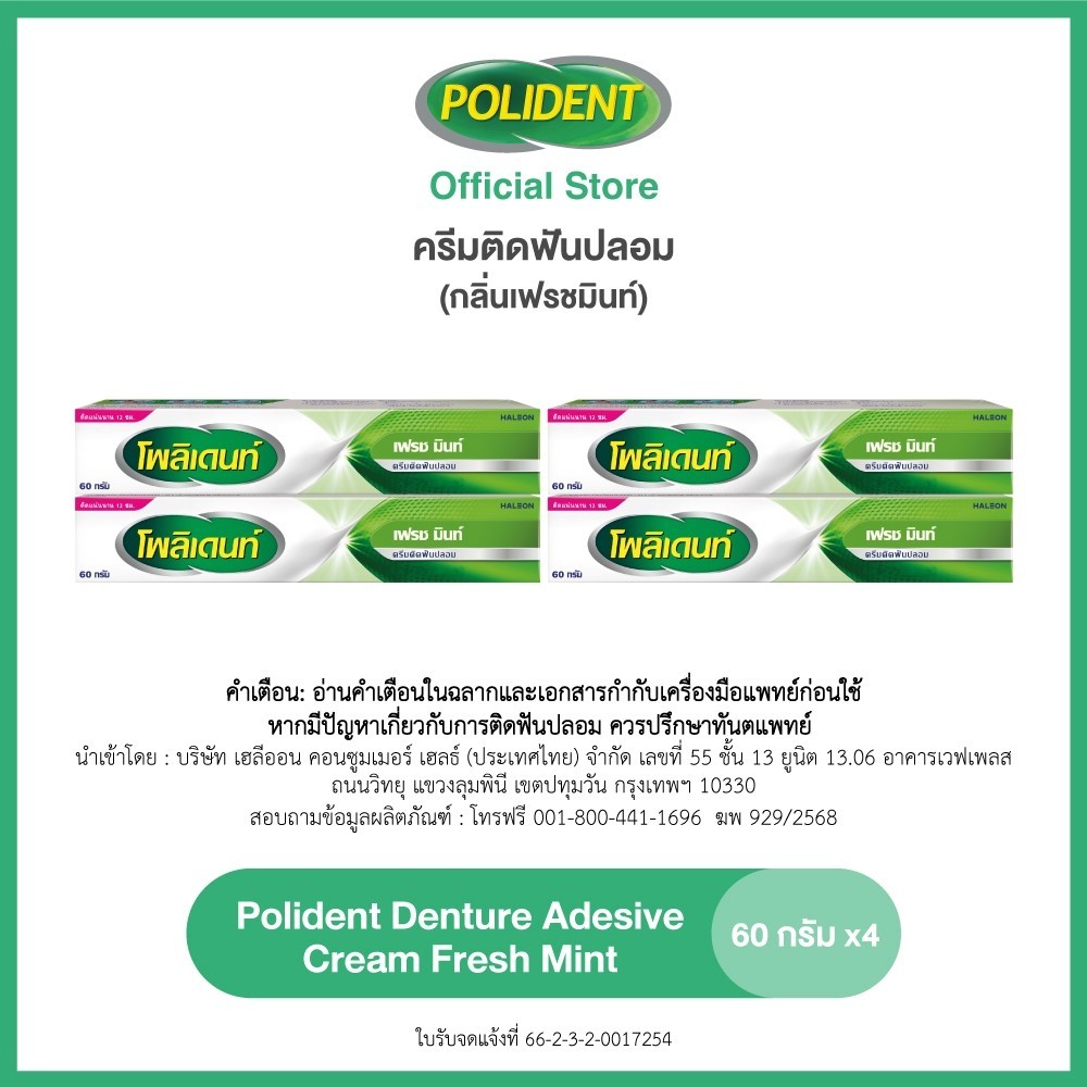 [ส่งฟรี] [เลือกสูตรได้] POLIDENT DENTURE ADHESIVE CREAM 60G โพลิเดนท์ ครีมติดฟันปลอม 60 กรัม แพ็ค 4