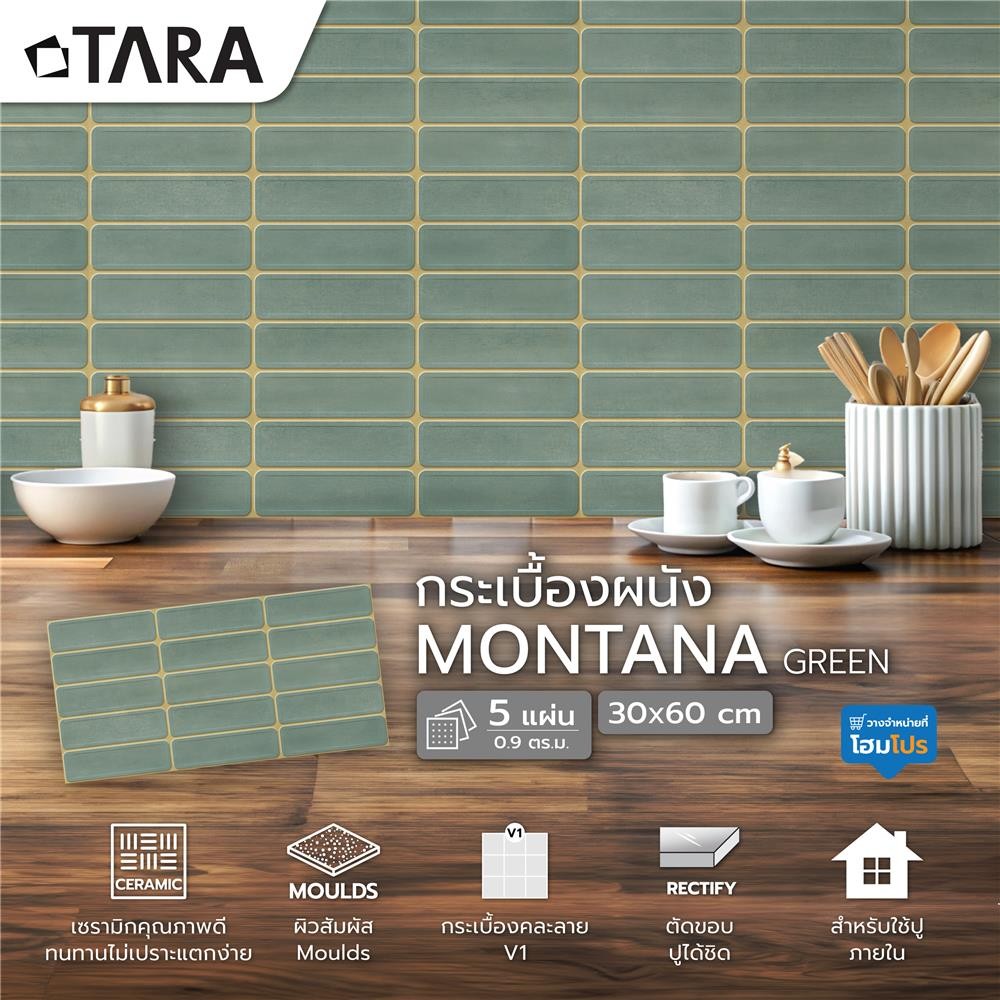 TARA กระเบื้องผนัง 30x60 ซม. มอนทาน่า กรีน A 0.9 ตร.ม. จัดส่งโดย HomePro