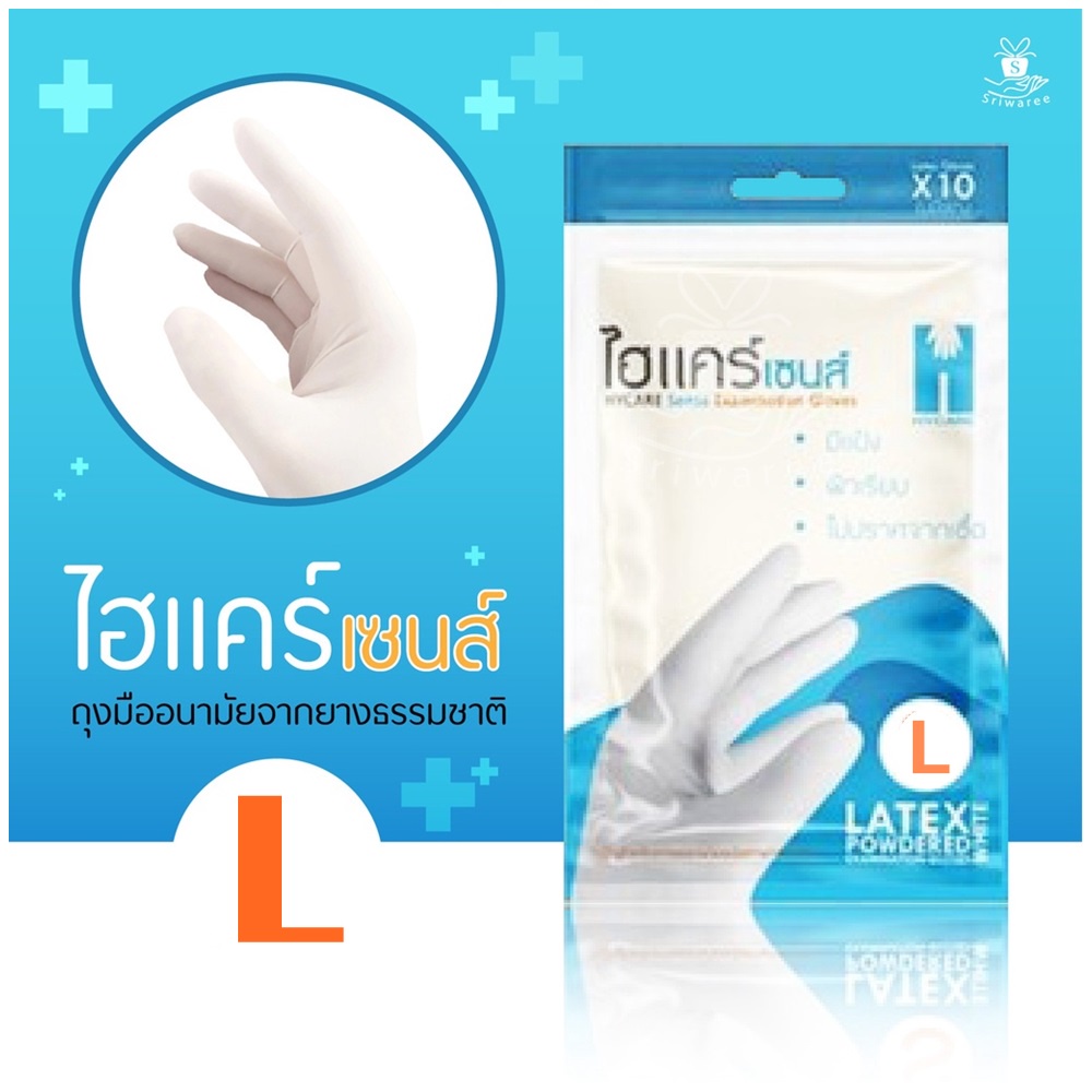 Hycare Sense Latex Gloves 10pcs/pack (5คู่) - ไฮแคร์ เซนต์ ถุงมือยาง 10 ชิ้น/แพ็ค (5คู่)