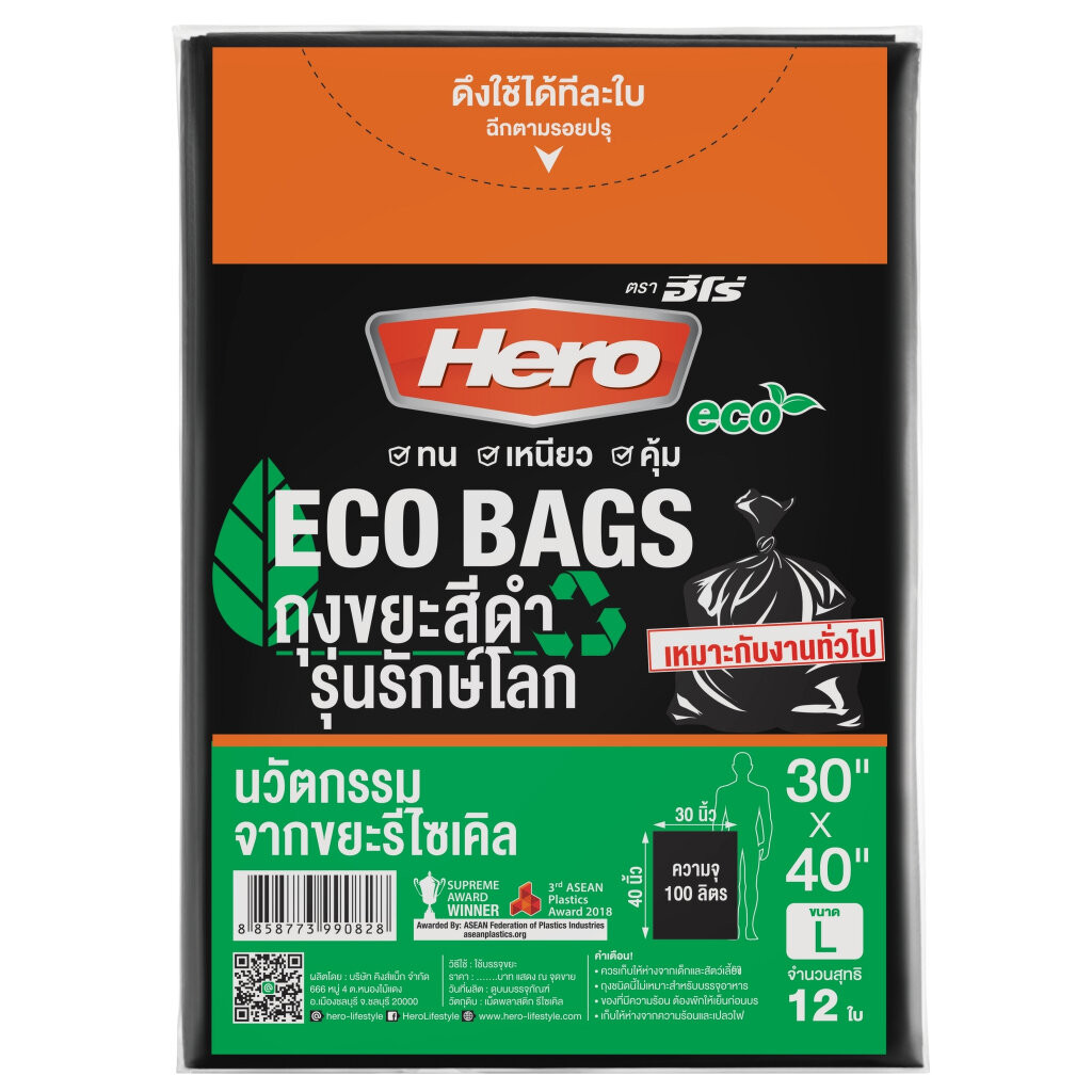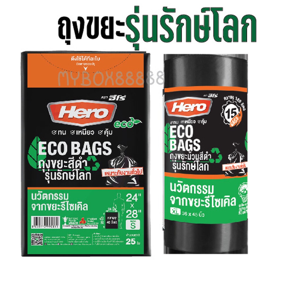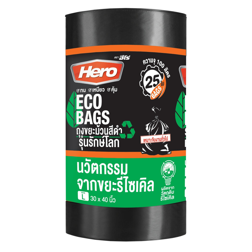 Hero ถุงขยะแบบม้วนสีดำ รุ่นรักษ์โลก ECO ถุงขยะฮีโร่