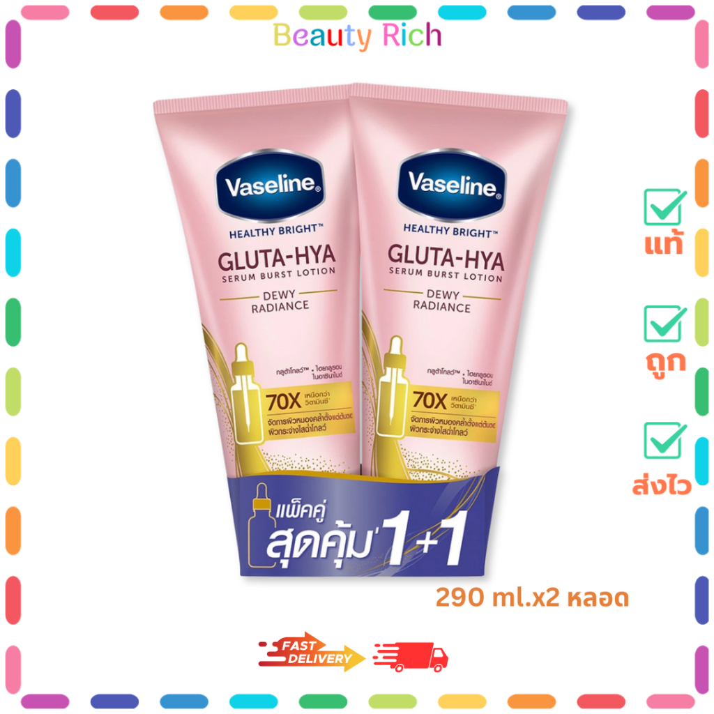 (แพ็คคู่) Vaseline Gluta-Hya Dewy Radiance (หลอดชมพู) วาสลีน ดิวอี้ เรเดียนซ์ โลชั่น (290 ml.)