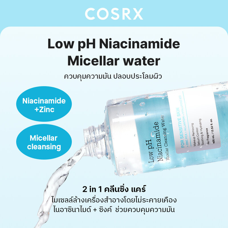 COSRX Low pH Niacinamide Micellar Cleansing Water 400ml ไมเซล่าคลีนซิ่งวอเตอร์.