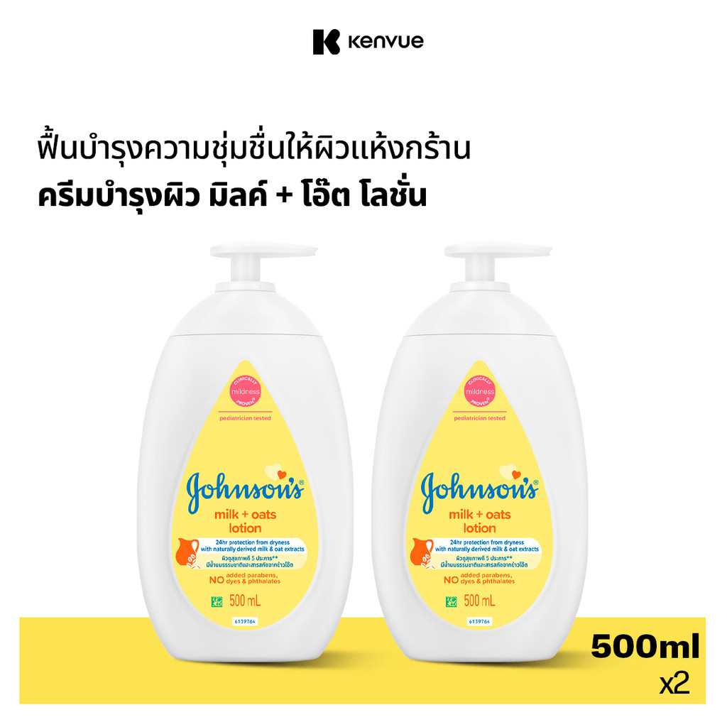 [แพ็คคู่] จอห์นสัน เบบี้ ครีมบำรุงผิว มิลค์ + โอ๊ต โลชั่น 500 มล. x2 Johnson's Body Lotion Milk + Oats Lotion 500 ml. x2