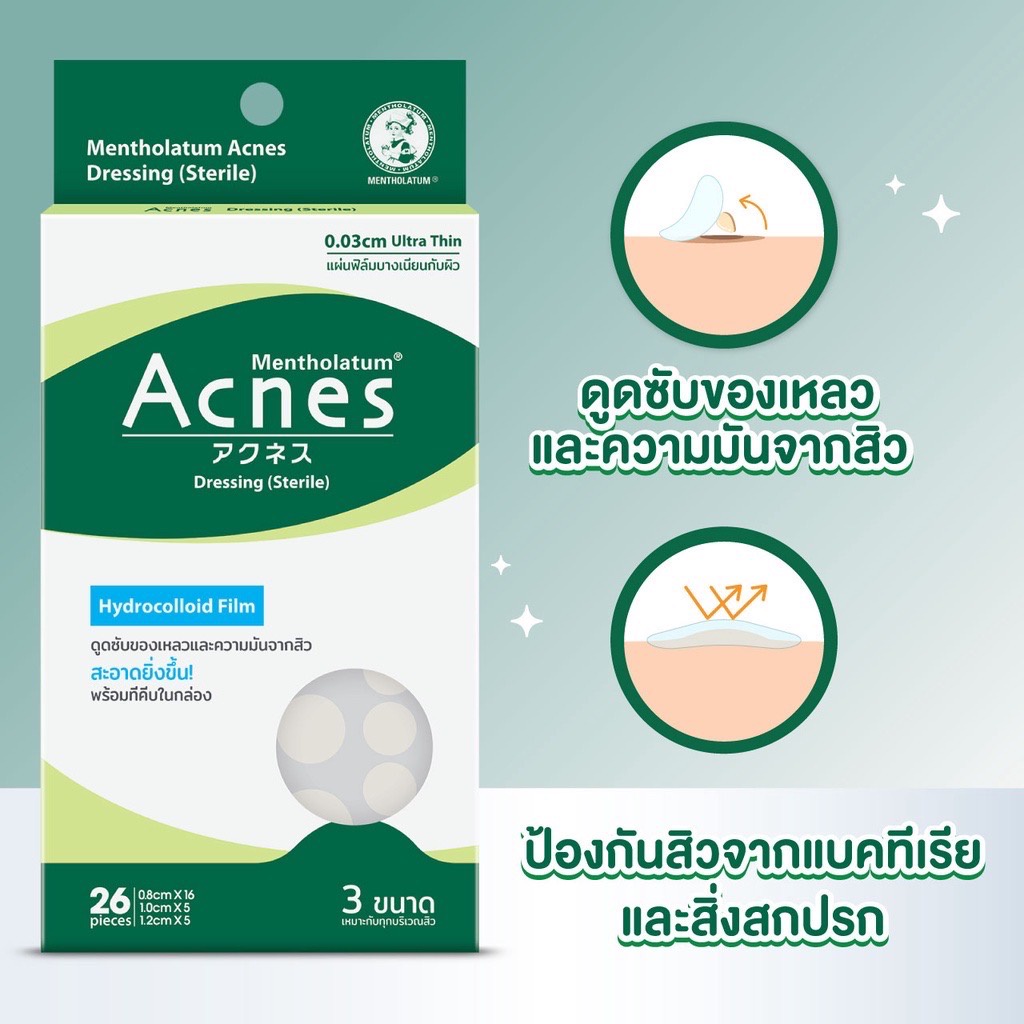 @เมนโทลาทั่ม แอคเน่ เดรสวิ่ง สเตอร์ไรล์ (แผ่นแปะสิว) Mentholatum Acnes Dressing (Sterile)