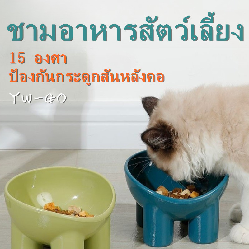 ชามอาหารสัตว์เลี้ยง แมว สุนัข ชามใส่อาหารสำหรับสัตว์เลี้ยง 15 องศา ป้องกันกระดูกสันหลังคอ CW28