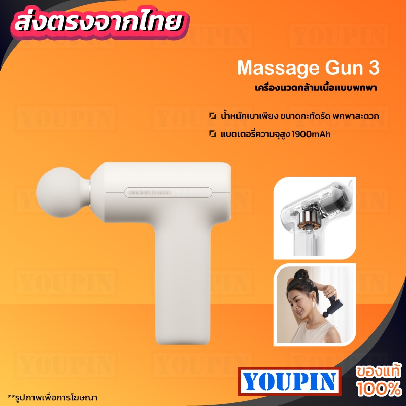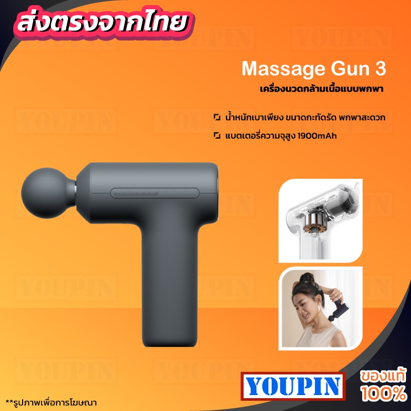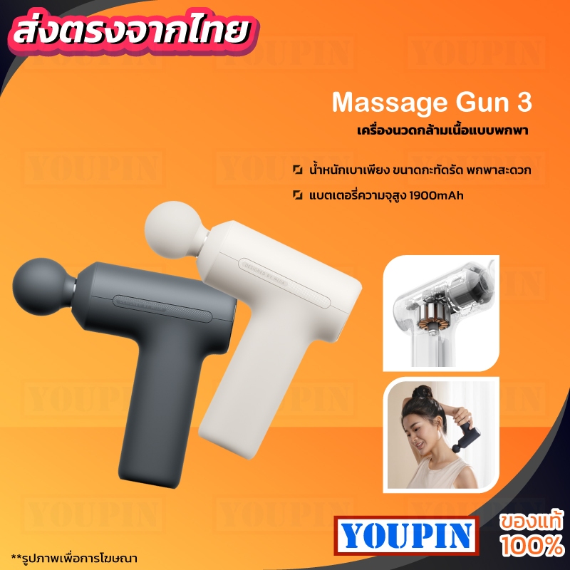 Xiaomi mijia ปืนนวดมือถือ Fascia Gun กล้ามเนื้อนวดไฟฟ้า ด้ามจับแบบพกพาและถอดออกได้ Massage Gun 3