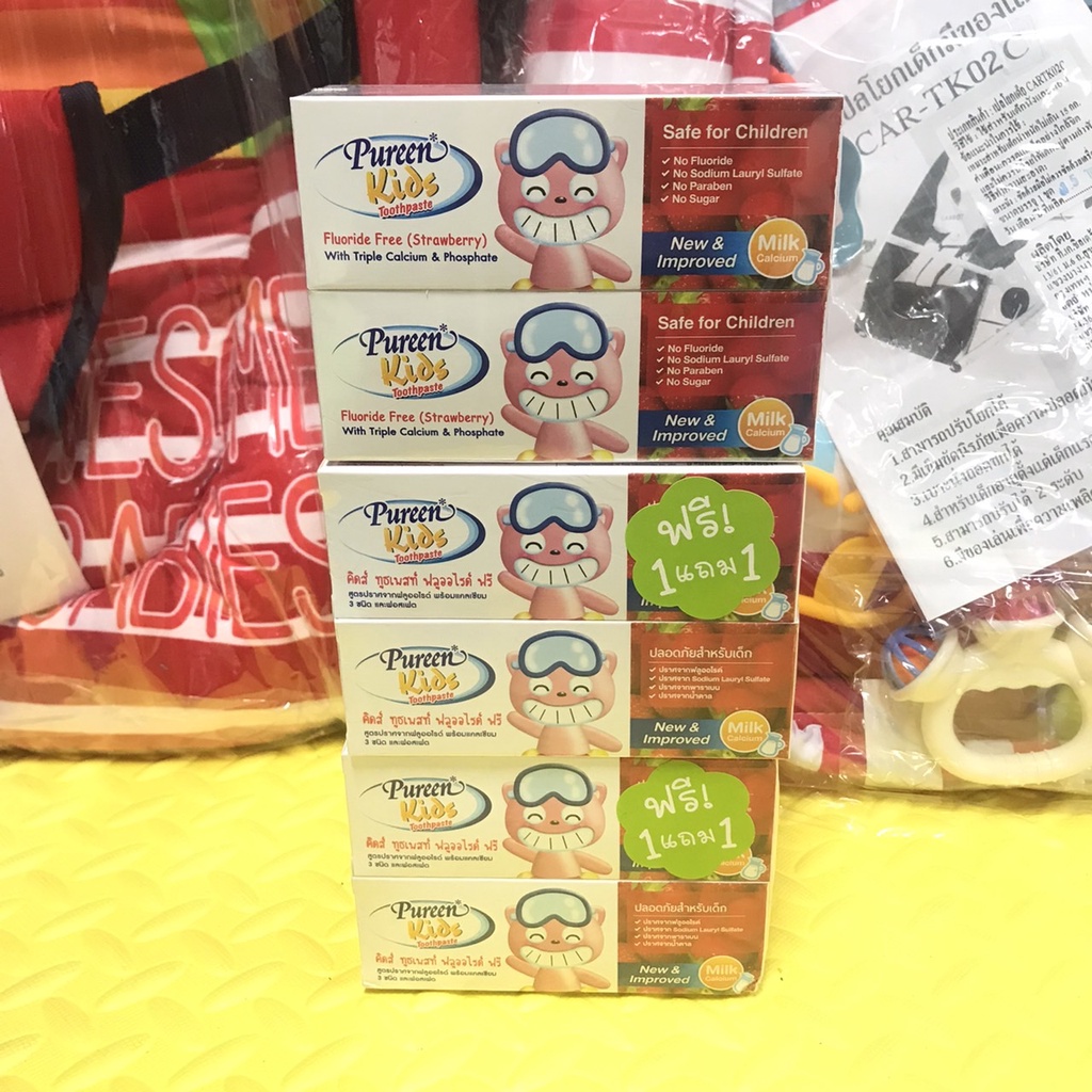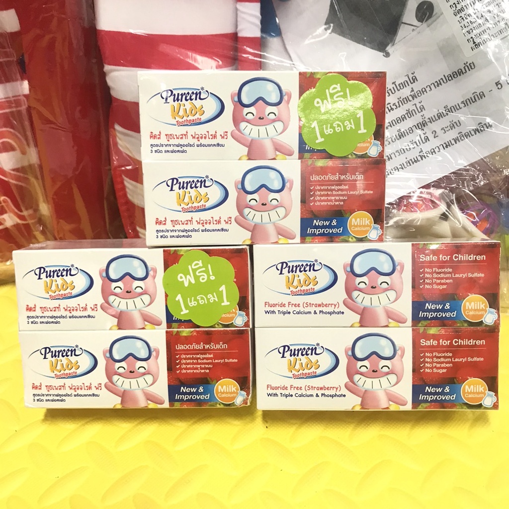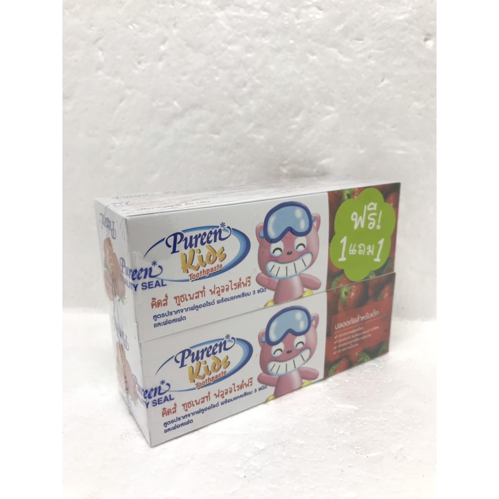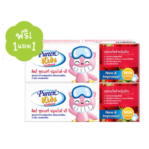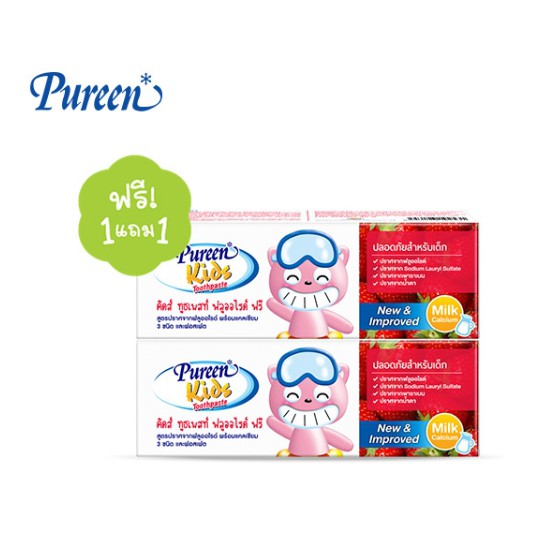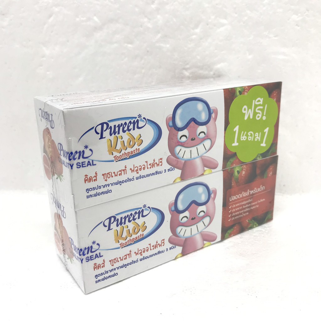 ยาสีฟันเด็กเพียวรีน(pureen)รุ่น 1 แถม 1 รสสตอเบอร์รี่