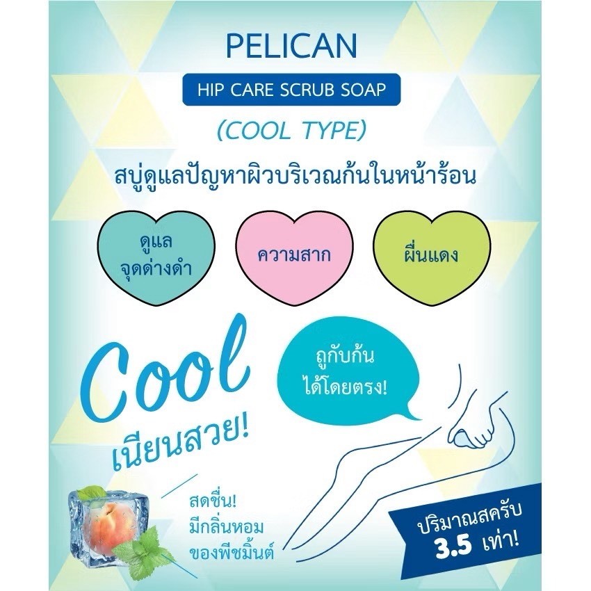 พร้อมส่ง Pelican Soap 80กรัม สบู่สครับก้นเรียบเนียน ทำความสะอาดผิว สูตรเย็น