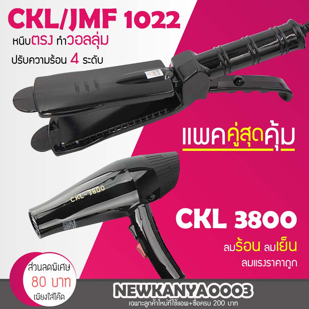 LIC 🔥 แพ็คคู่สุดคุ้ม 🔥เครื่องหนีบผม CKL / JMF 1022 ที่หนีบผม หนีบตรง หนีบเงา+ไดร์เป่าผม เครื่องเป่าผม ที่เป่าผม CKL 3800