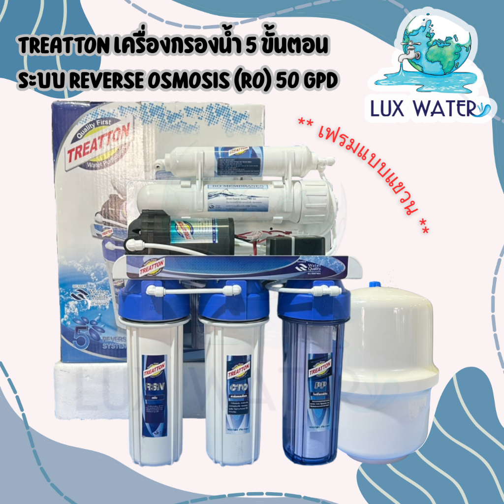 Treatton เครื่องกรองน้ำ 5 ขั้นตอน ระบบ Reverse Osmosis (RO) 50 GPD เฟรมแขวน