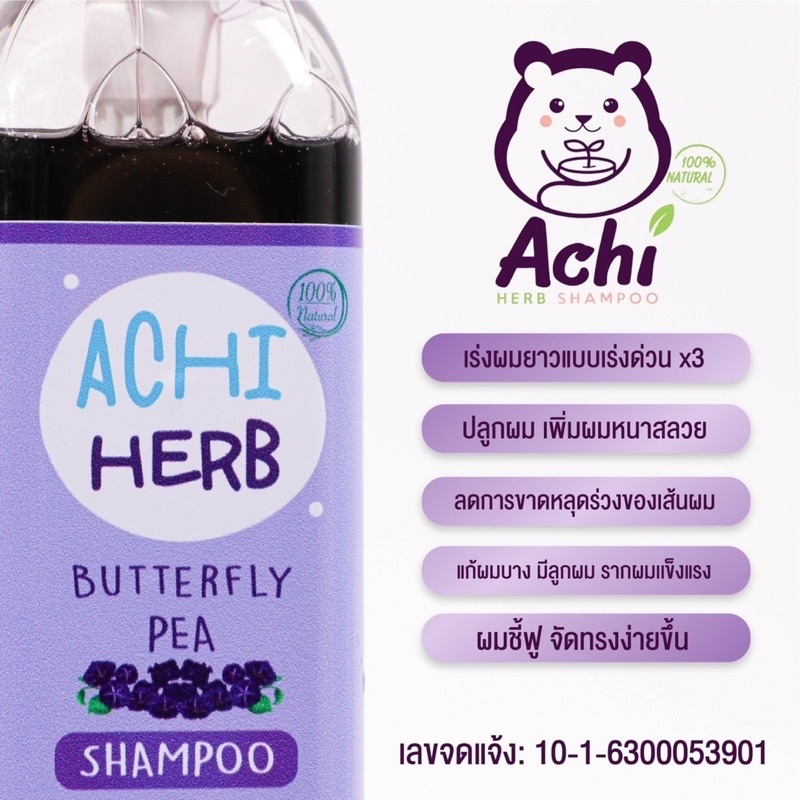 เร่งผมยาวเด็ก แชมพูสมุนไพรอัญชันออแกนิค100% Achi Herb shampoo