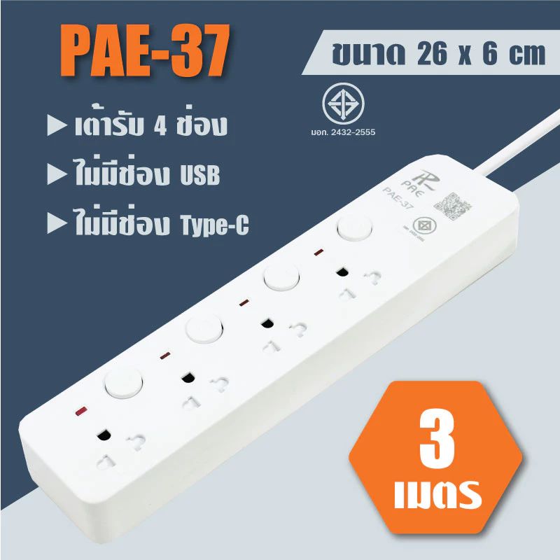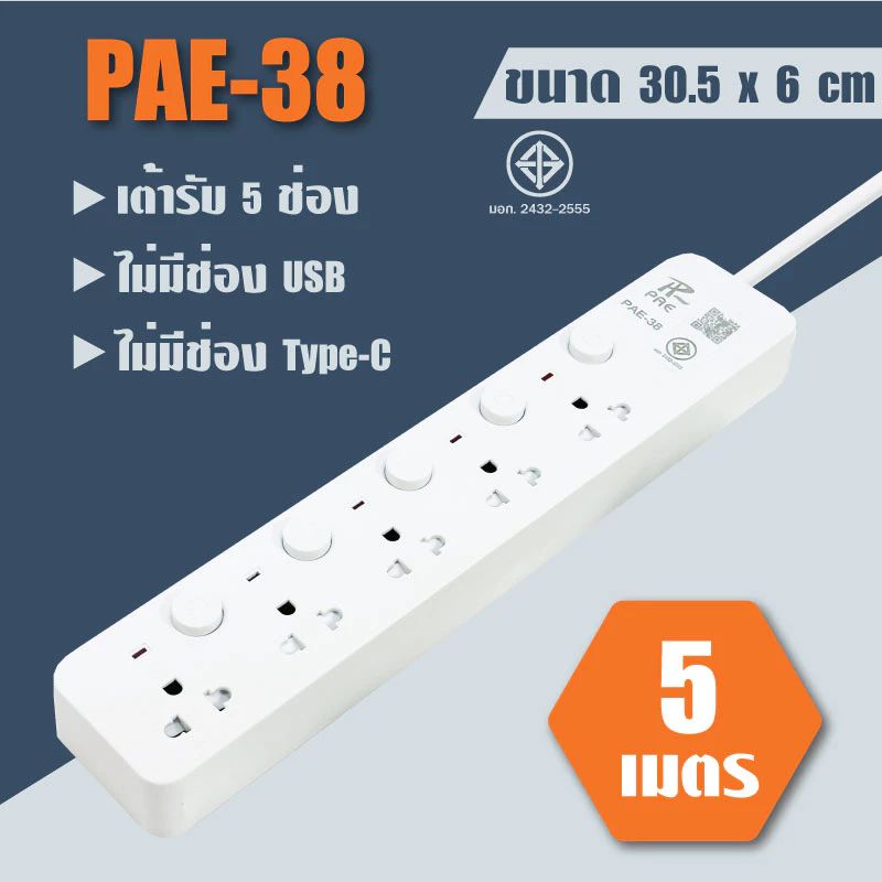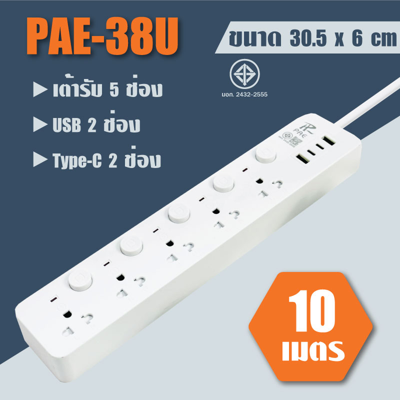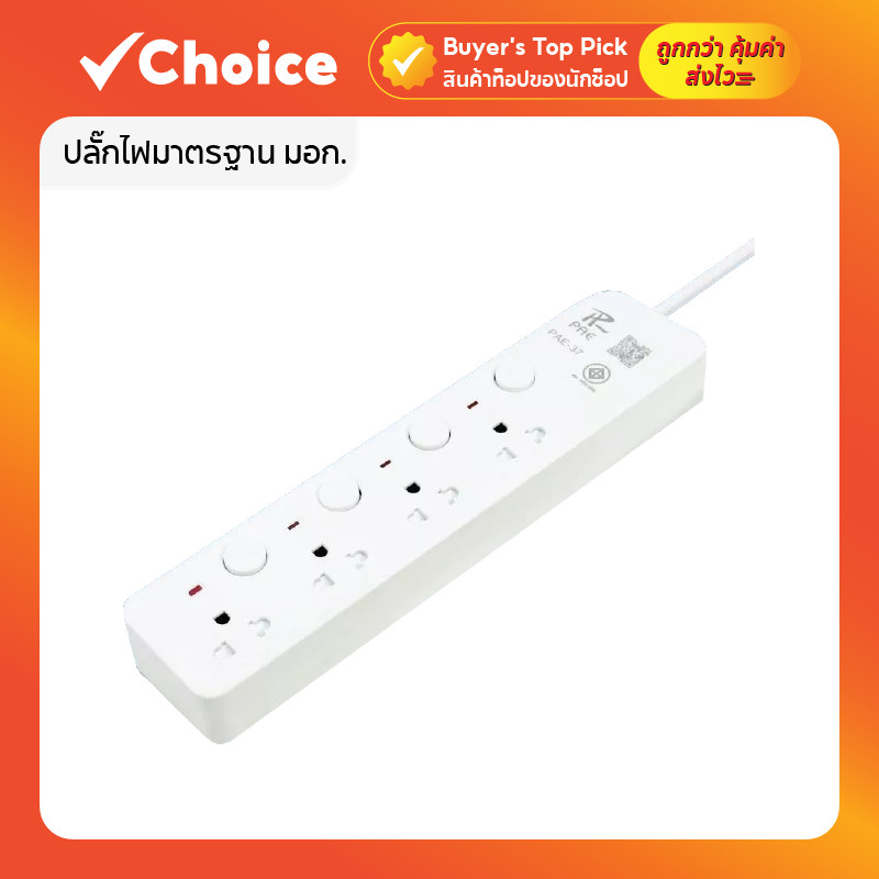 ปลั๊กไฟมาตรฐาน มอก. รองรับกำลังไฟ 2300W มีพอร์ต USB ระบบกันไฟสองชั้น มีให้เลือกหลายแบบ