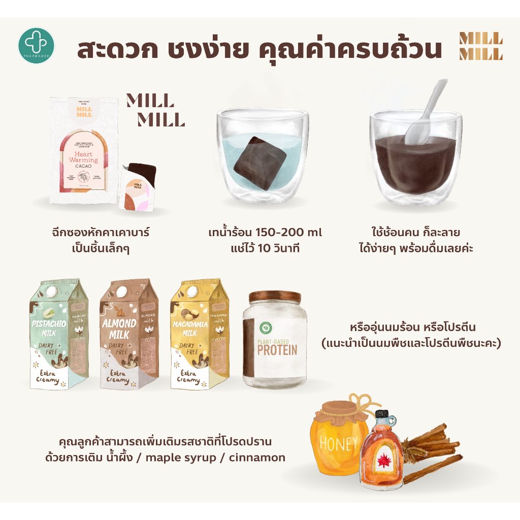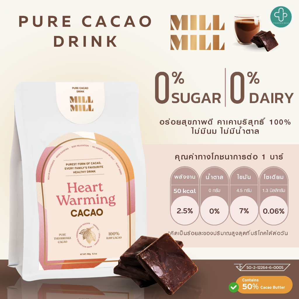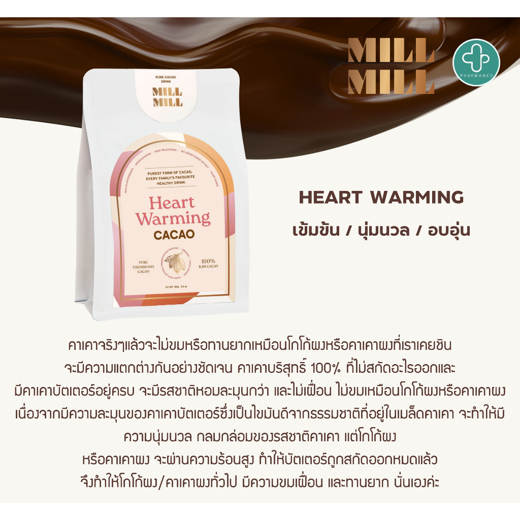 (พร้อมส่ง) MILL MILL Heart Warming Cacao 150g คาเคาบริสุท ธิ์ 100% คาเคา บาร์ ไม่ผ่านความร้อนสูง ชงดื่มเพื่อสุขภาพ