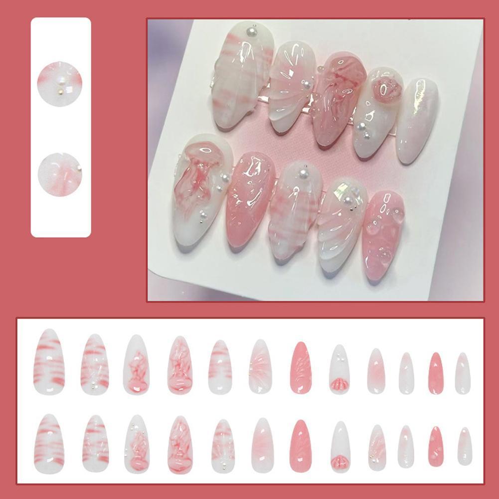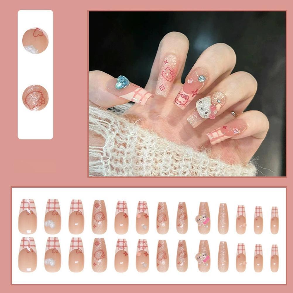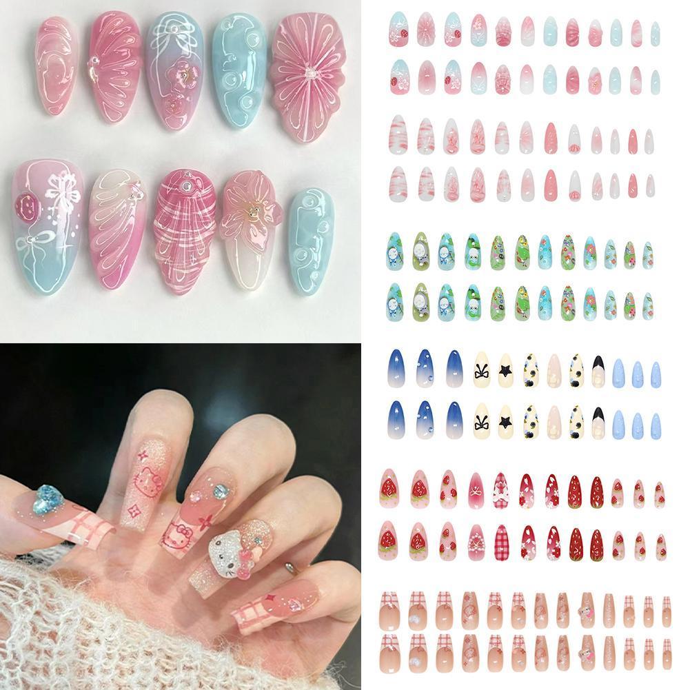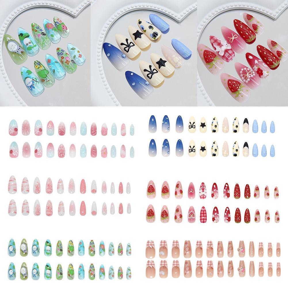 เล็บอัลมอนด์เล็บเล็บเม็ดเล็บน่ารักเล็บแพทช์แมวเม็ดความยาวเล็บขนาดกลางหวาน โวลต์4ก3