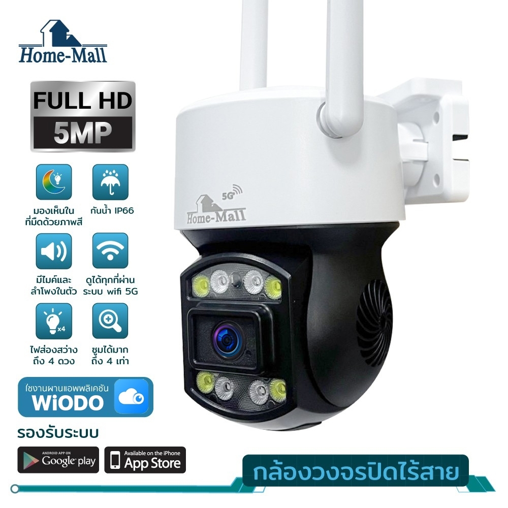 HOME-MALL กล้องวงจรปิดไร้สาย indoor/outdoor 5MP FULL Color Mini PTZ IP Camera กล้องวงจรปิดกันน้ำ