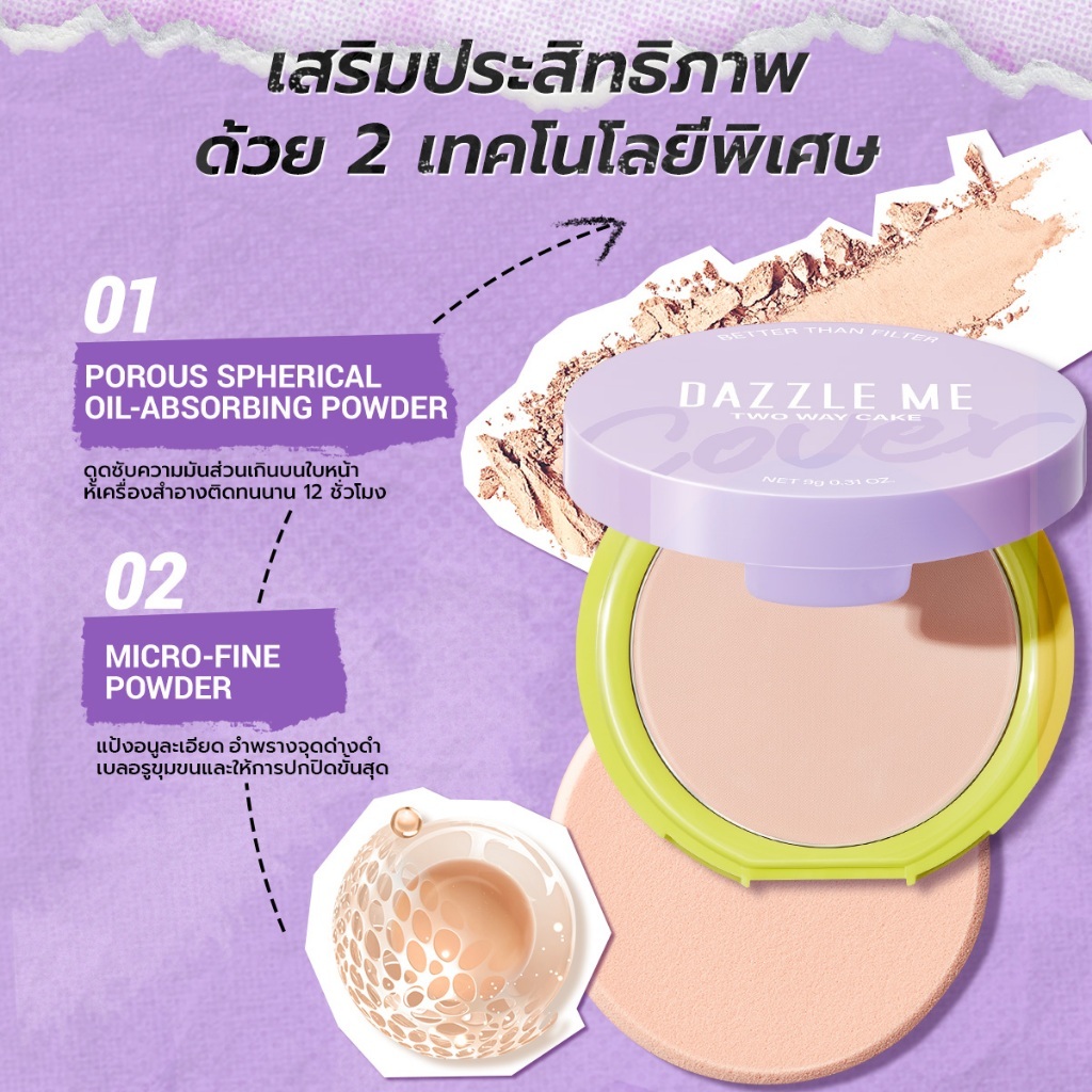 Dazzle Me แป้งผสมรองพื้น เนื้อแมท Better than Filter Double Kill Two Way Cake Powder